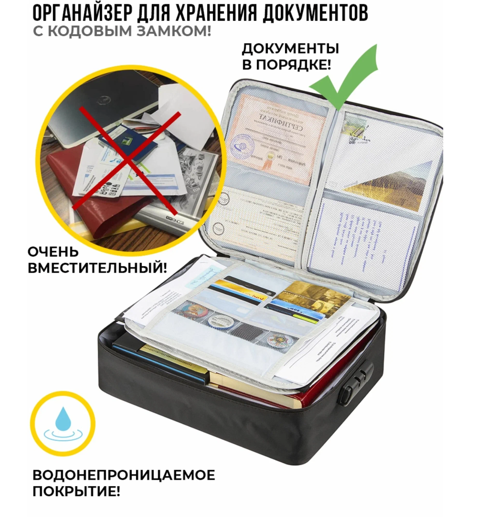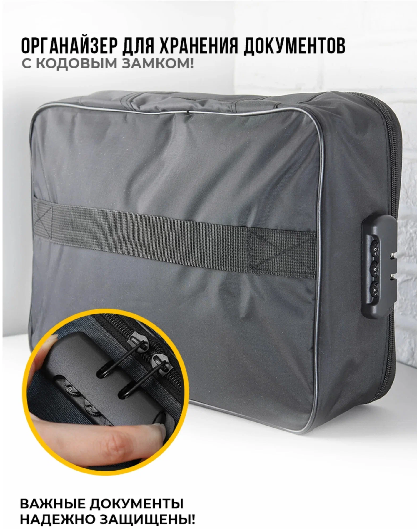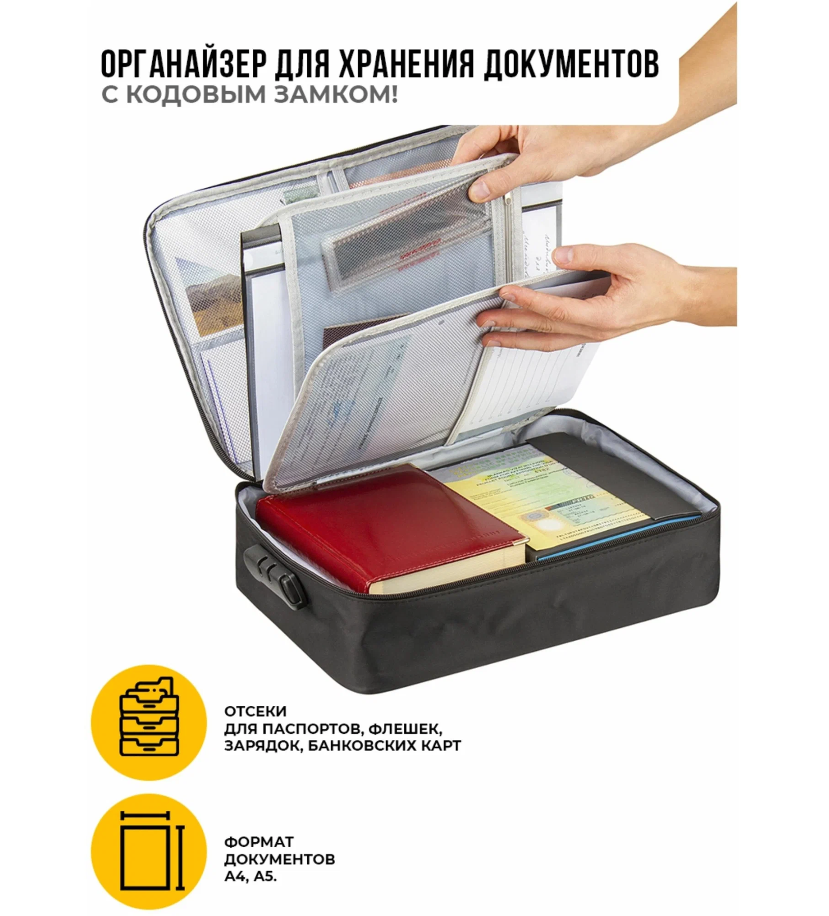Сумка-органайзер для хранения документов с кодовым замком, Черная интересное: