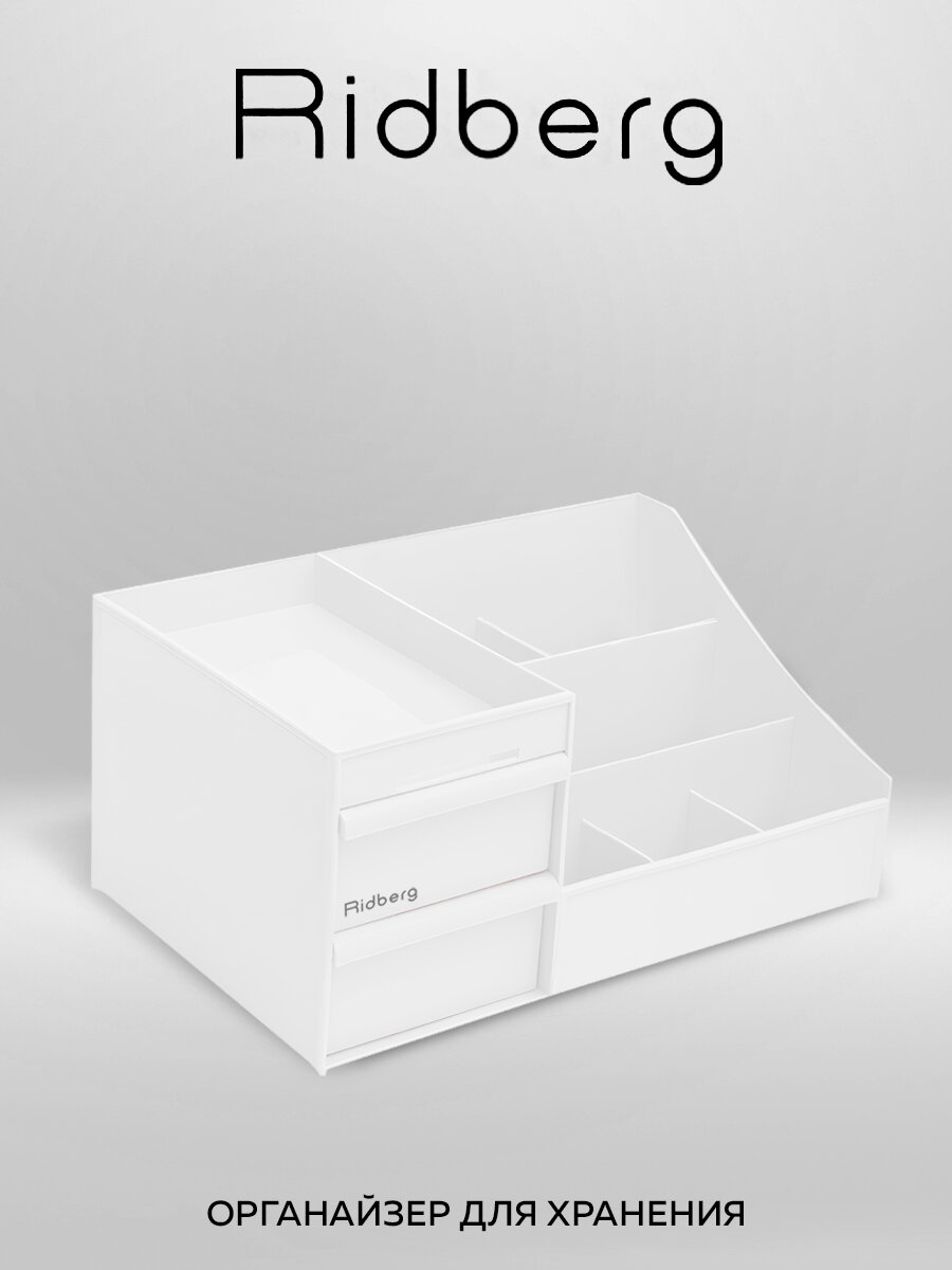 Купить Органайзер для косметики Ridberg белый, для хранения канцелярии, мелочей, пластиковый, с ящиками