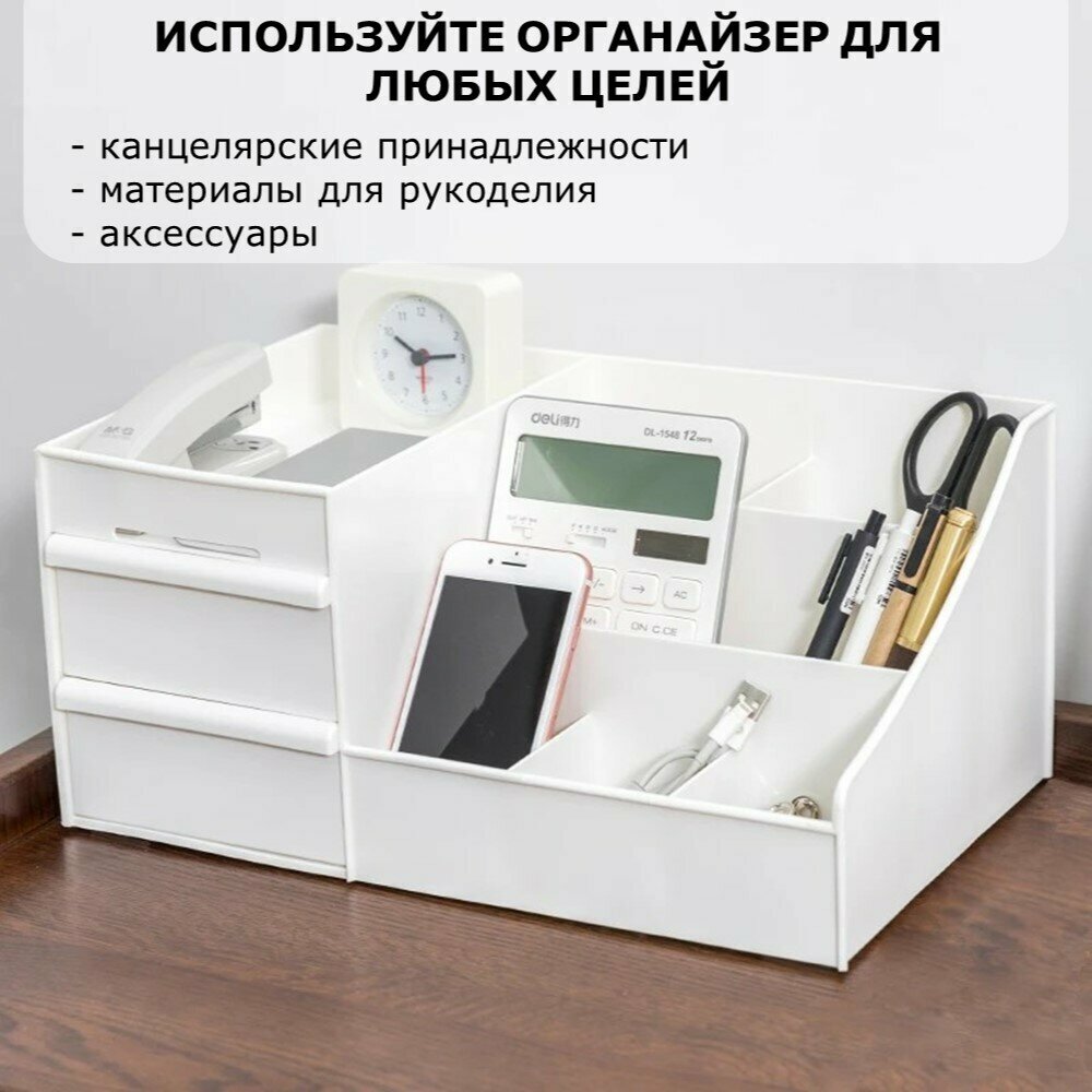 Настольный белый органайзер для хранения косметики, канцелярии и мелочей