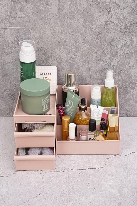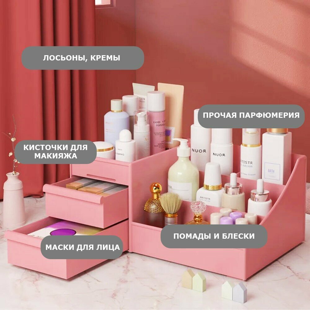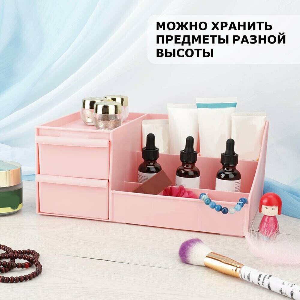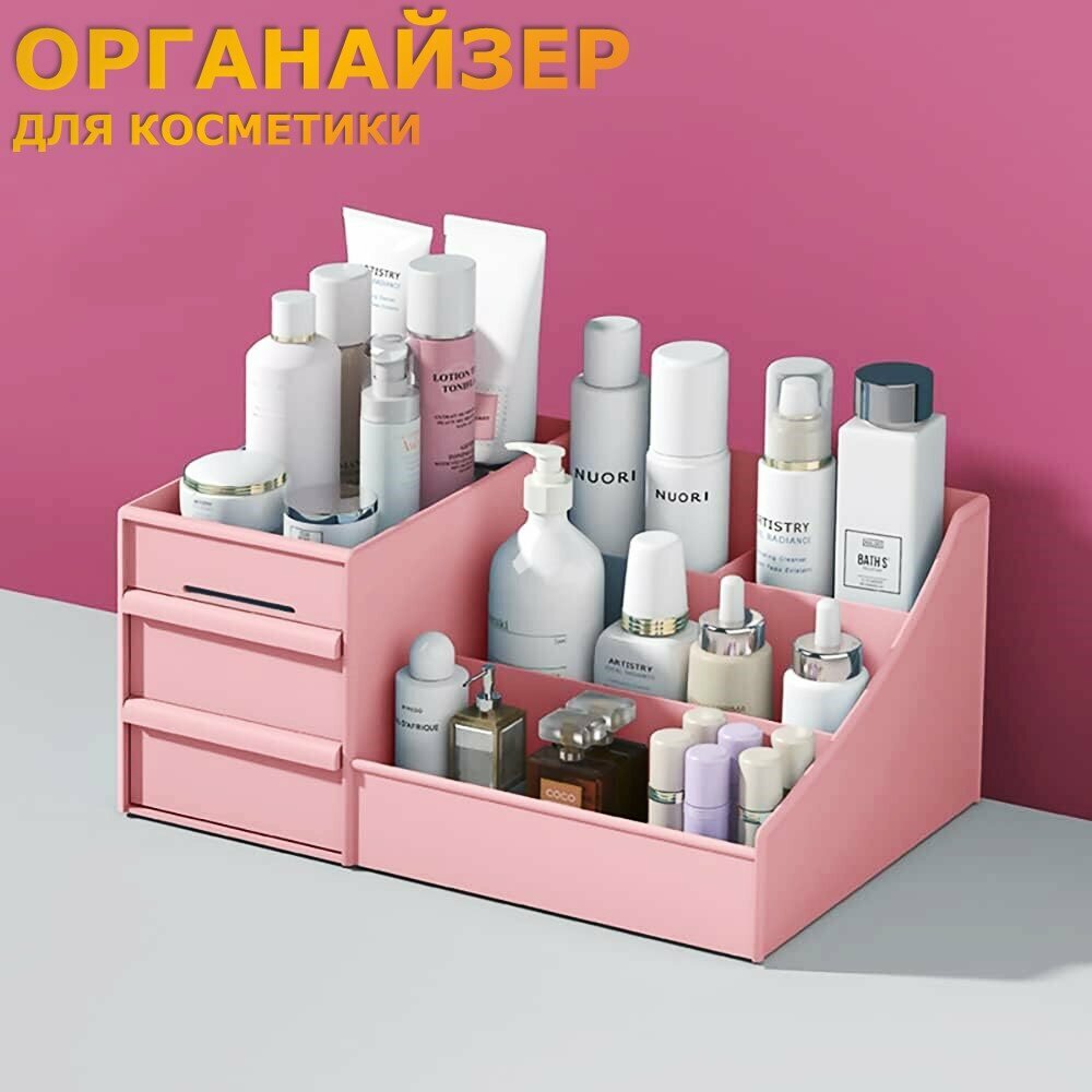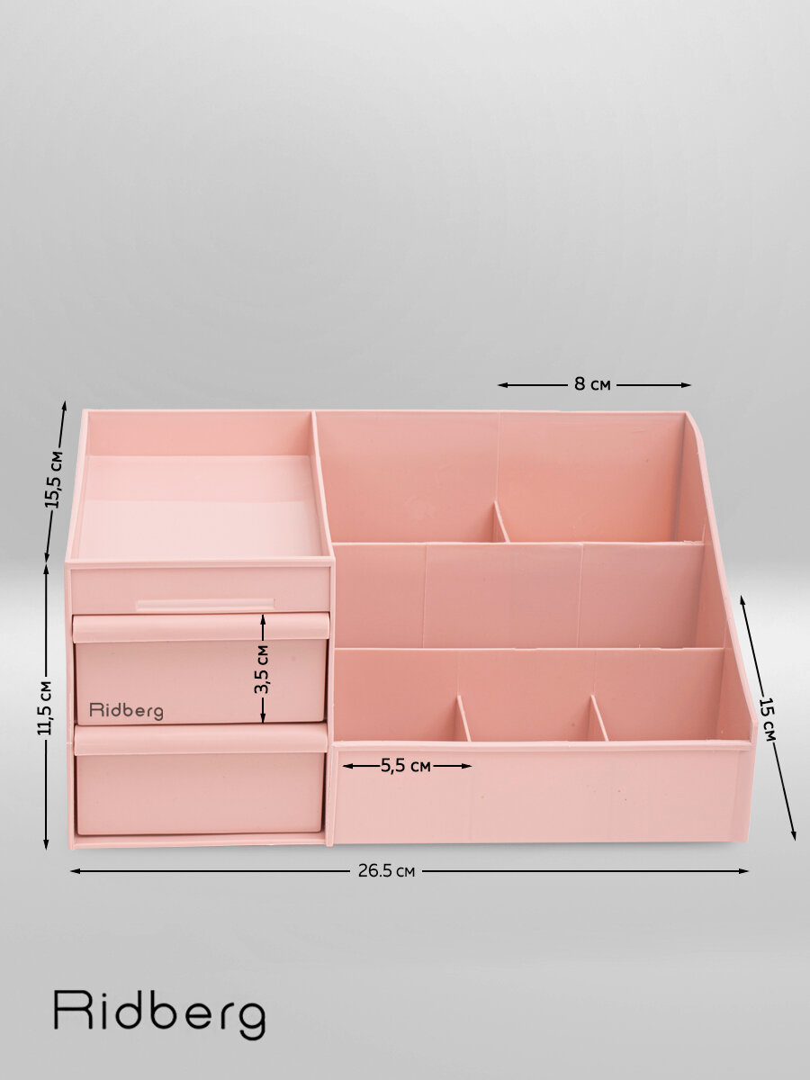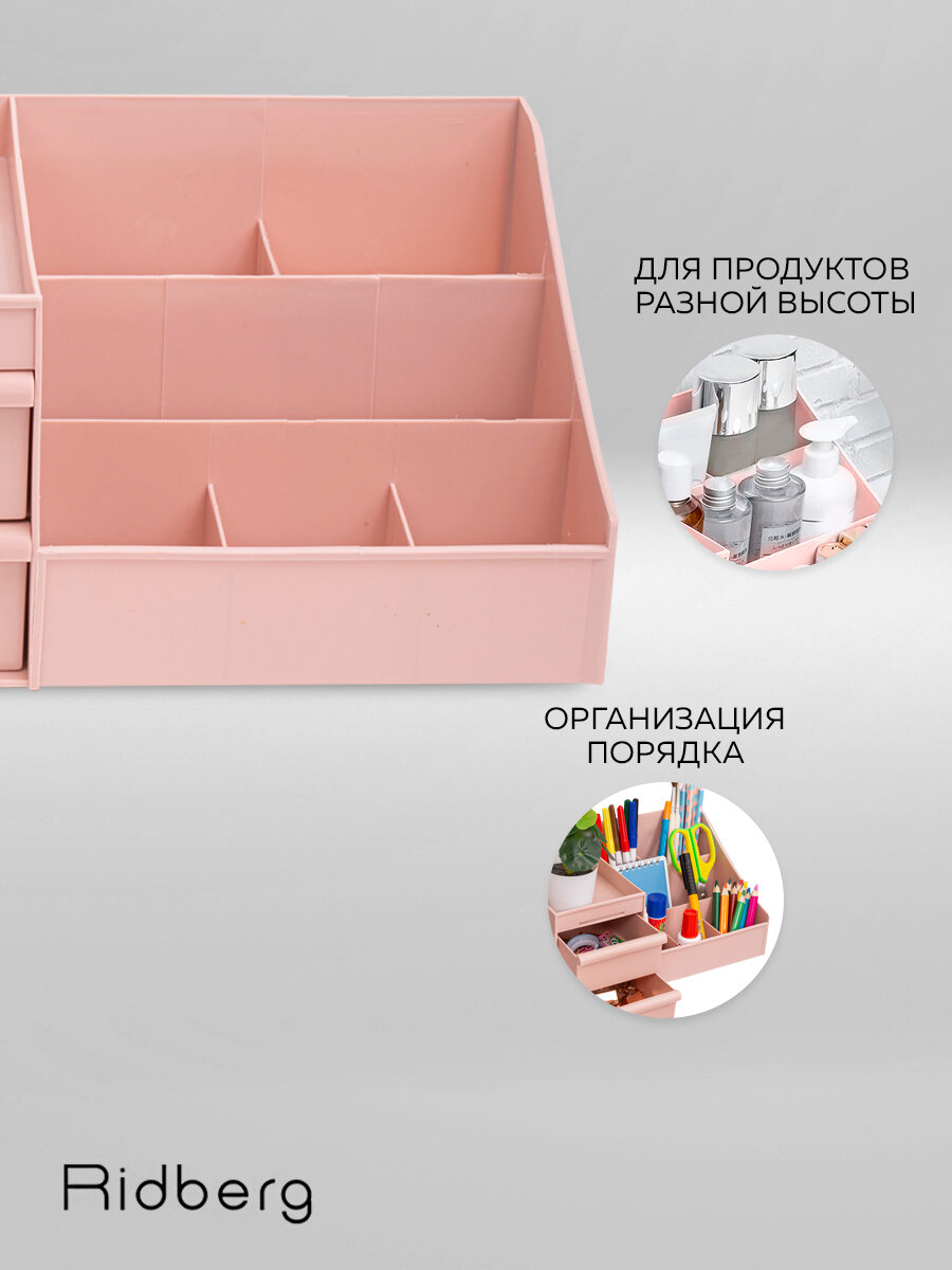 Органайзер для косметики Ridberg розовый, для хранения канцелярии, мелочей, пластиковый, с ящиками интересное: