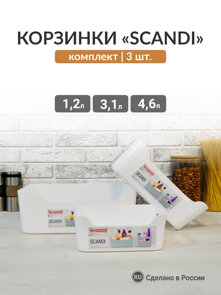 Набор корзинок универсальных Scandi 3,1л., 3шт (Белый) интересное: