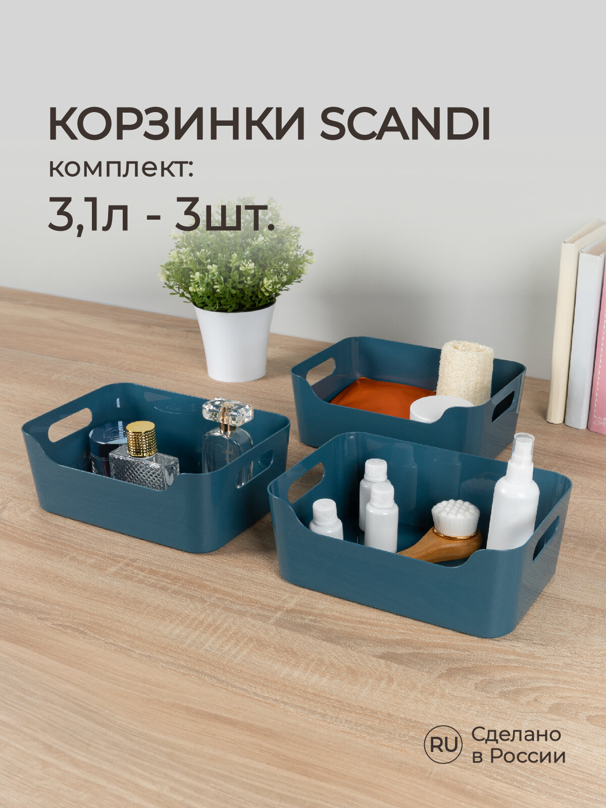Набор корзинок универсальных Scandi 3,1л, 3шт (Синий) интересное: