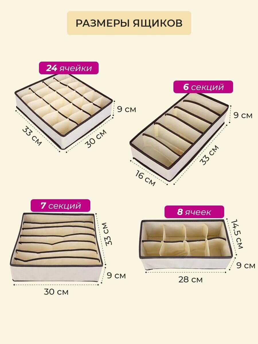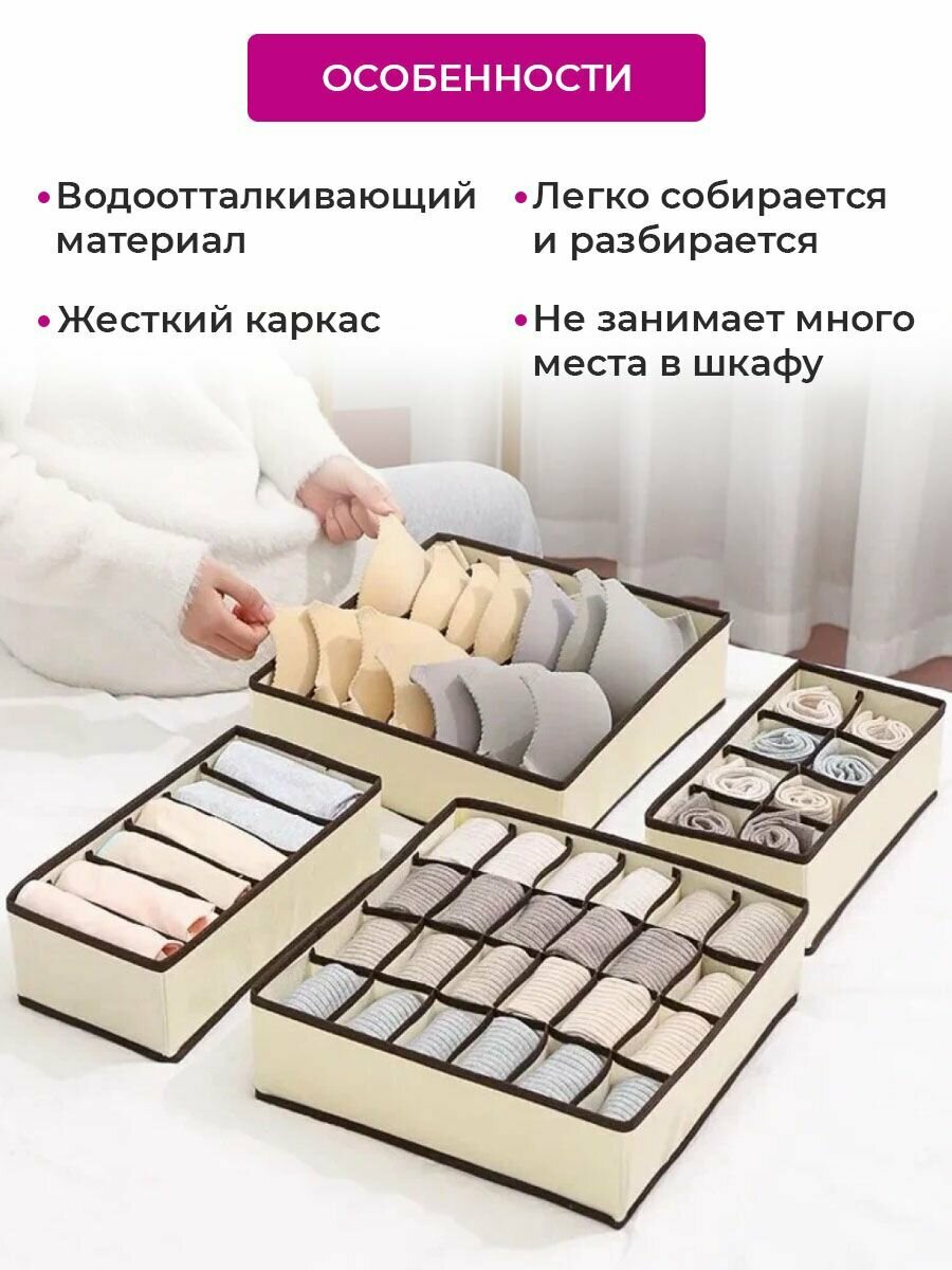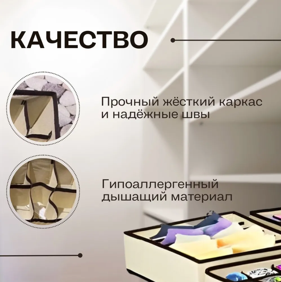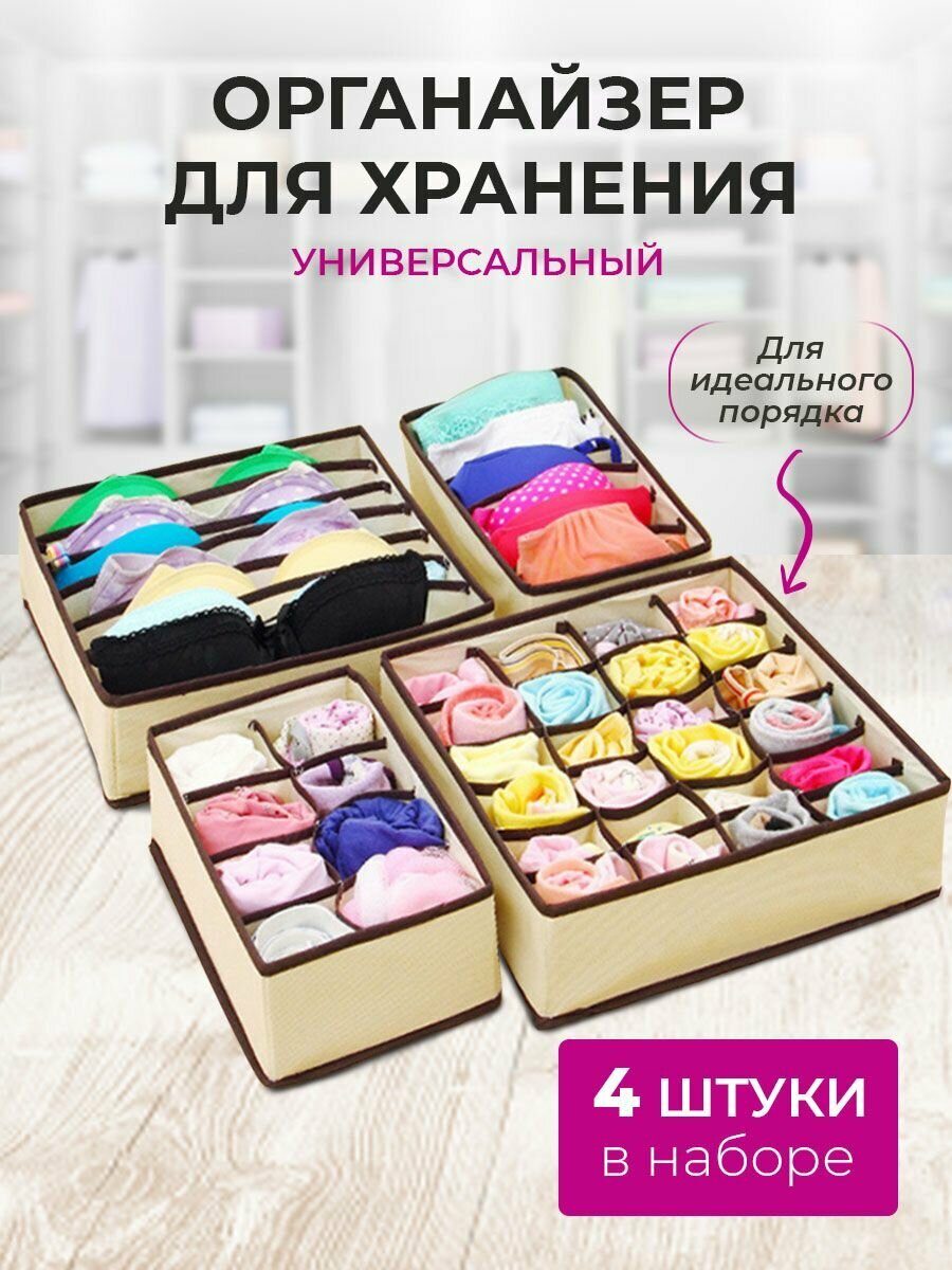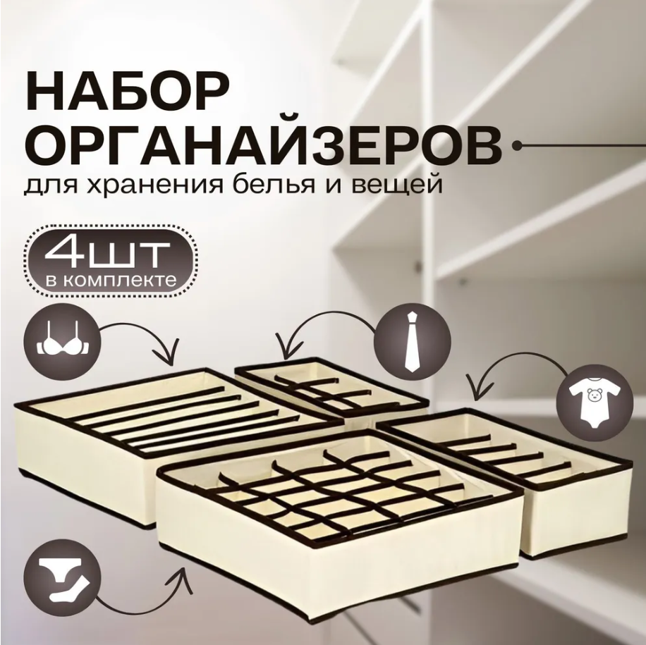 Органайзер для шкафа / Органайзер для хранения вещей, набор 4 шт, бежевый от Comfort_Zone