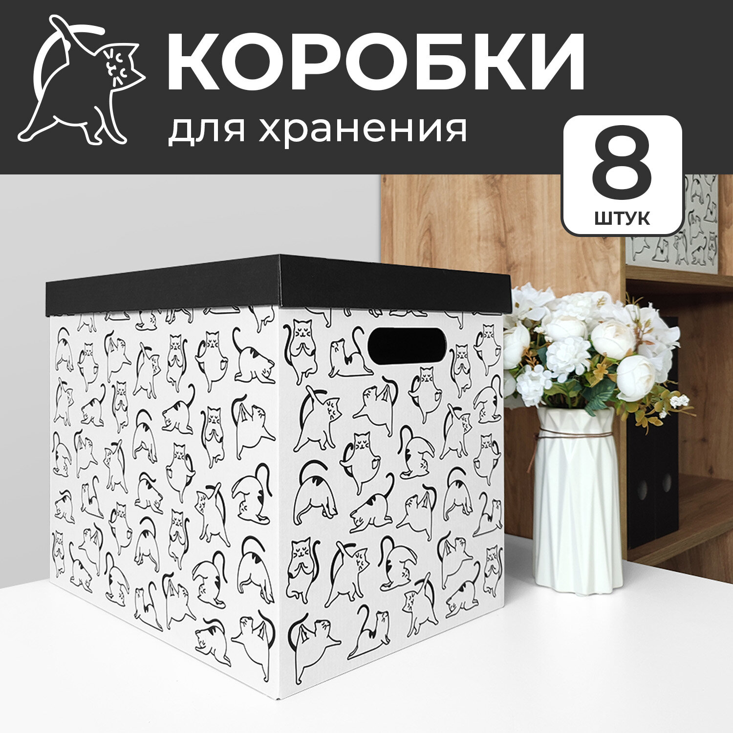 Купить Коробки для хранения вещей, игрушек, обуви, картонные, короб для хранения с крышкой, набор 8 шт., котики