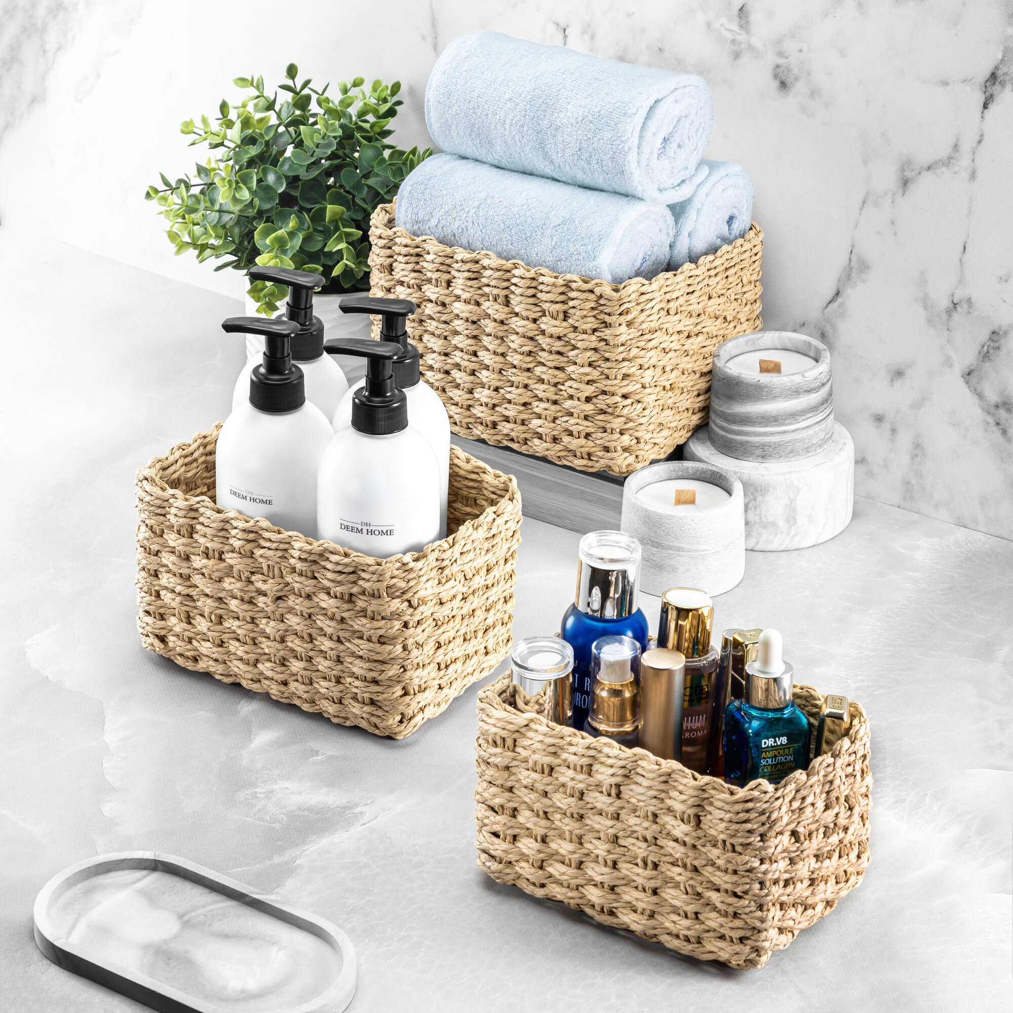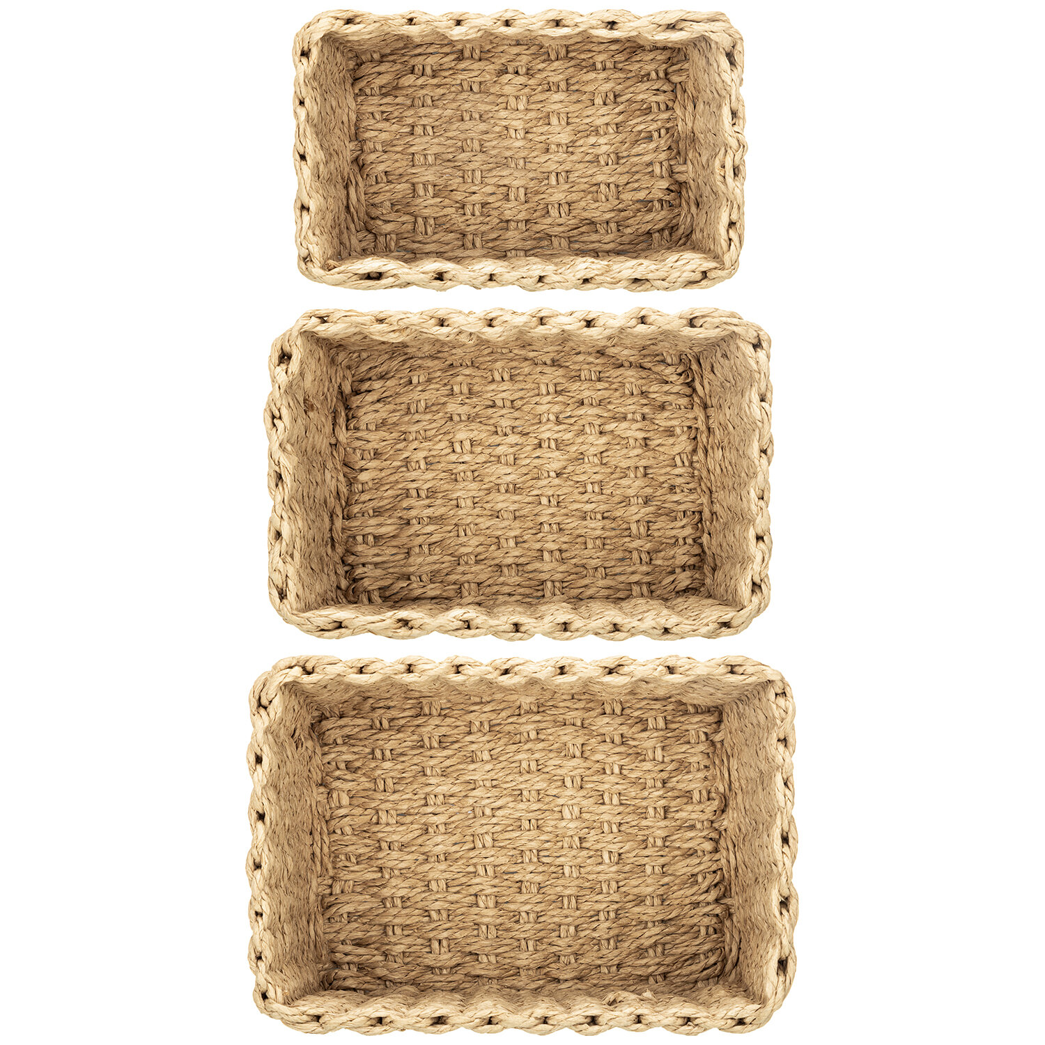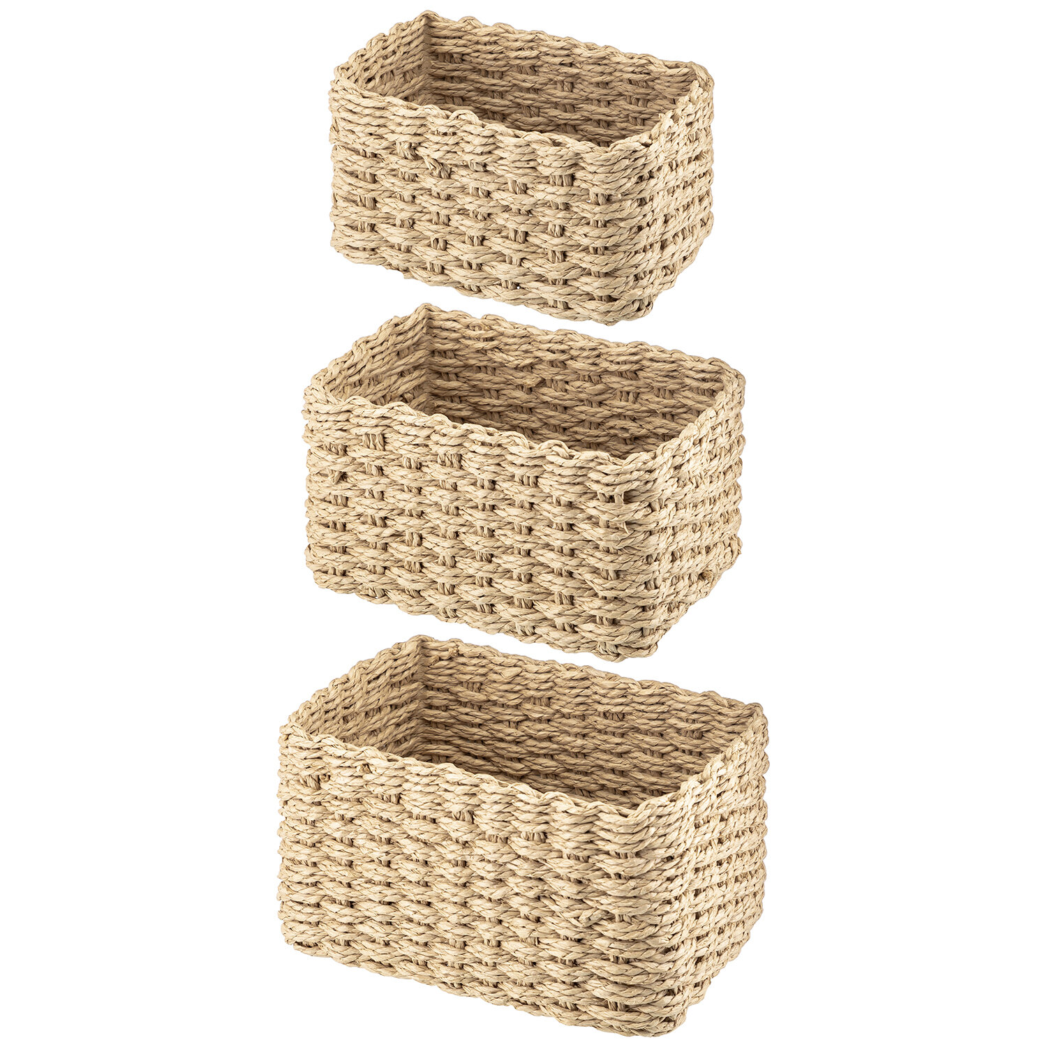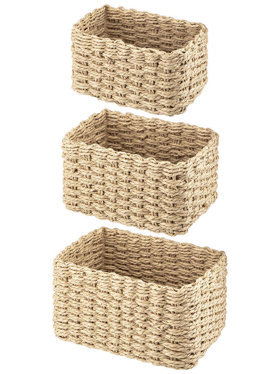 Корзинка плетеная 3 шт El Casa, соломенный, 1 корзинка 22х16х13 см, 1 корзинка 20х14х12 см, 1 корзинка 18х12х10 см, набор интересное: