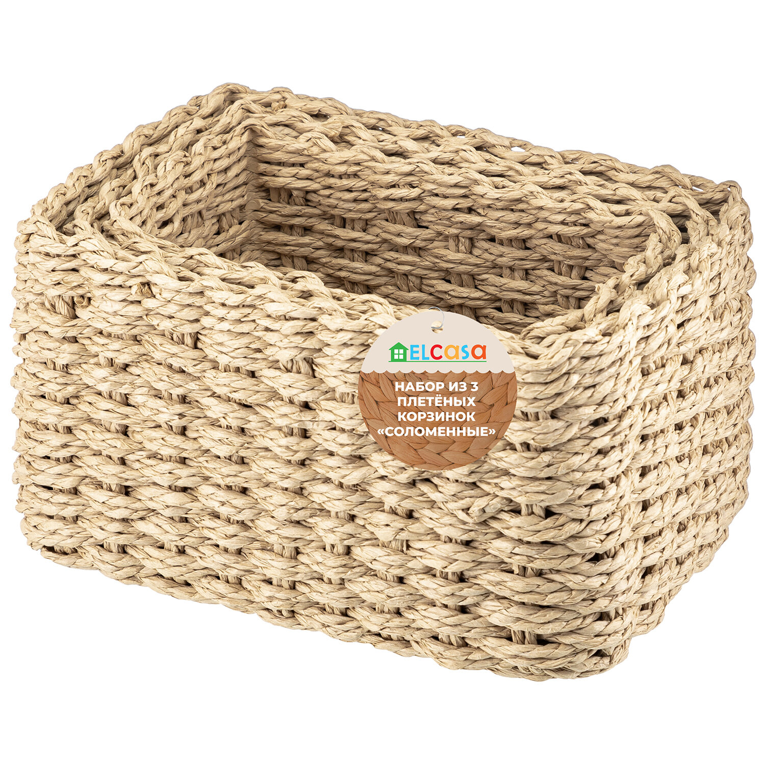 Купить Корзинка плетеная 3 шт El Casa, соломенный, 1 корзинка 22х16х13 см, 1 корзинка 20х14х12 см, 1 корзинка 18х12х10 см, набор