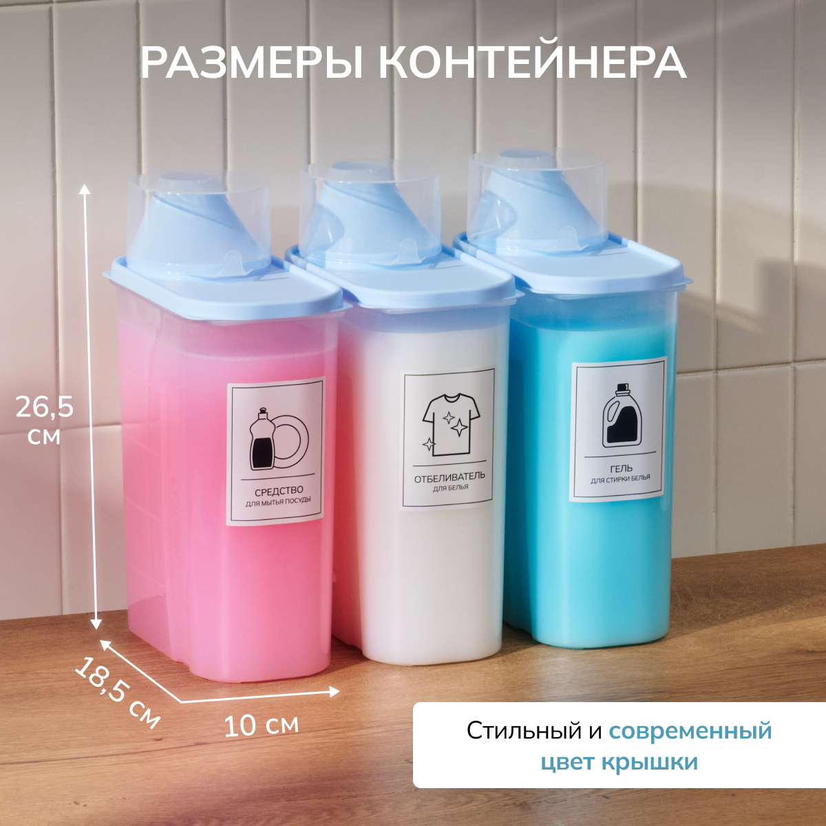Контейнер для стирального порошка набор 3 штуки с голубой крышкой интересное: