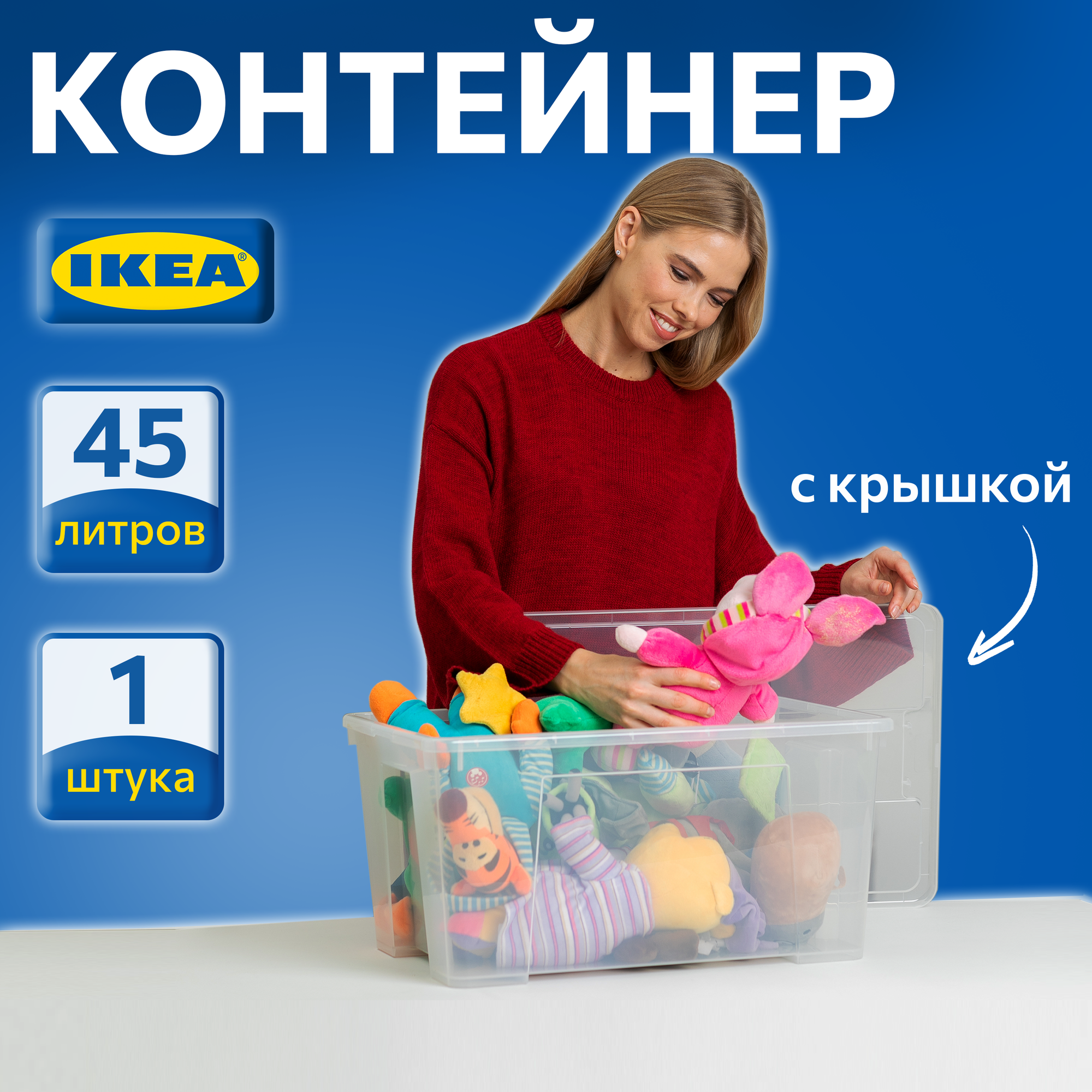 СохранитьКонтейнер для вещей с крышкой икеа самла SAMLA, 57x39x28 см/45 л, прозрачный 99389134 интересное: