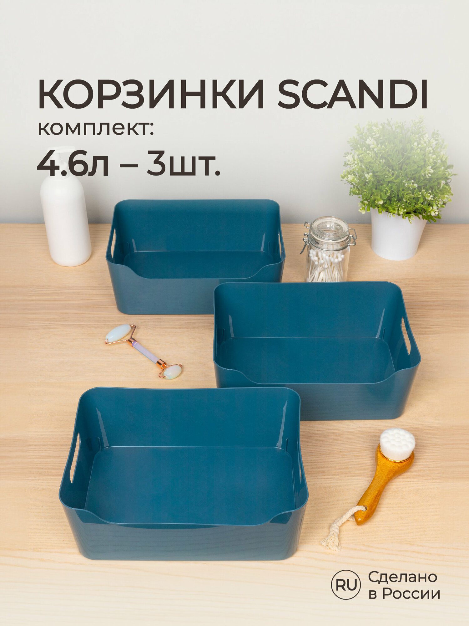 Набор корзинок универсальных SCANDI, 27x19x10,5см, 4,6л, 3 штуки (Синий) интересное: