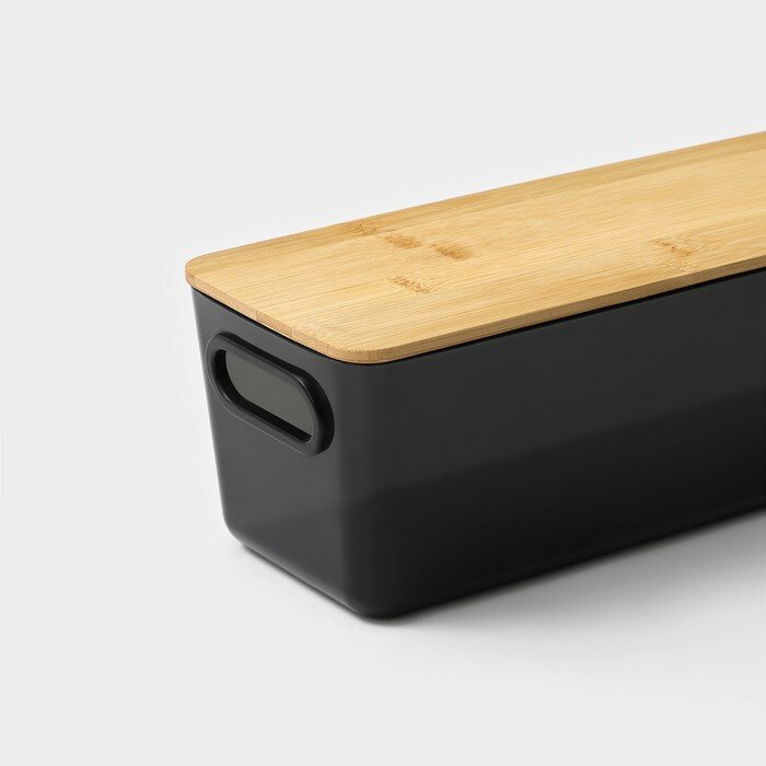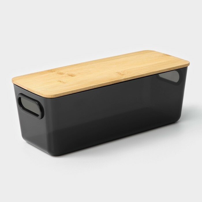 Контейнер для хранения с бамбуковой крышкой, органайзер для косметики и аксессуаров LaDо́m «Лаконичность» 31,5×22×15 см
