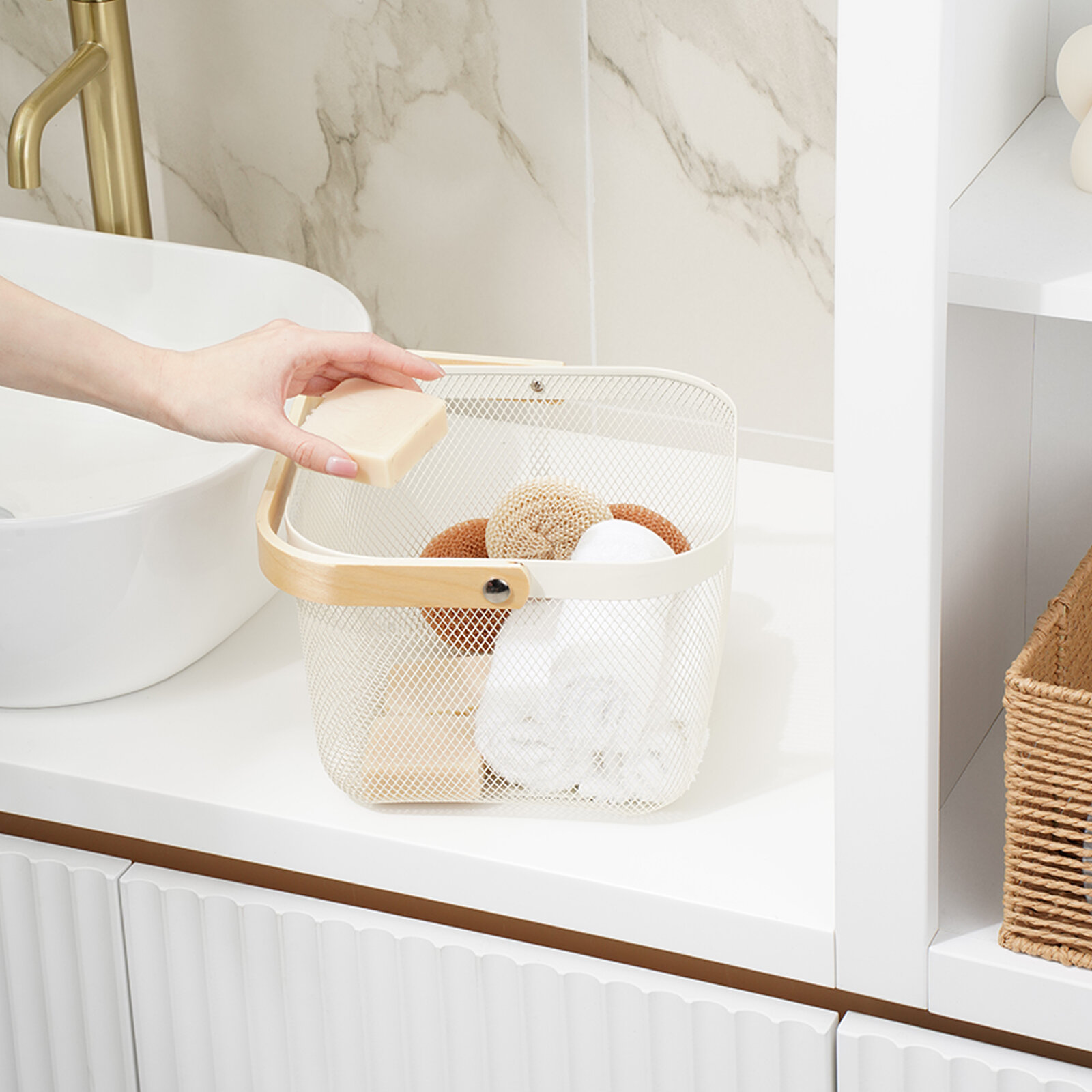 Корзинка универсальная для хранения в ванную LaDо́m, органайзер металлический, цвет белый
