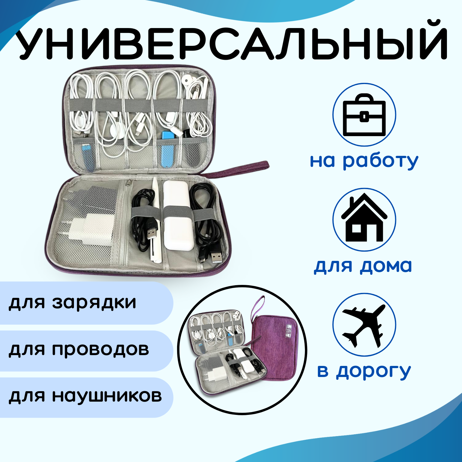 Купить Органайзер для проводов / Несессер для хранения проводов / Сумка для проводов, цвет фиолетовый