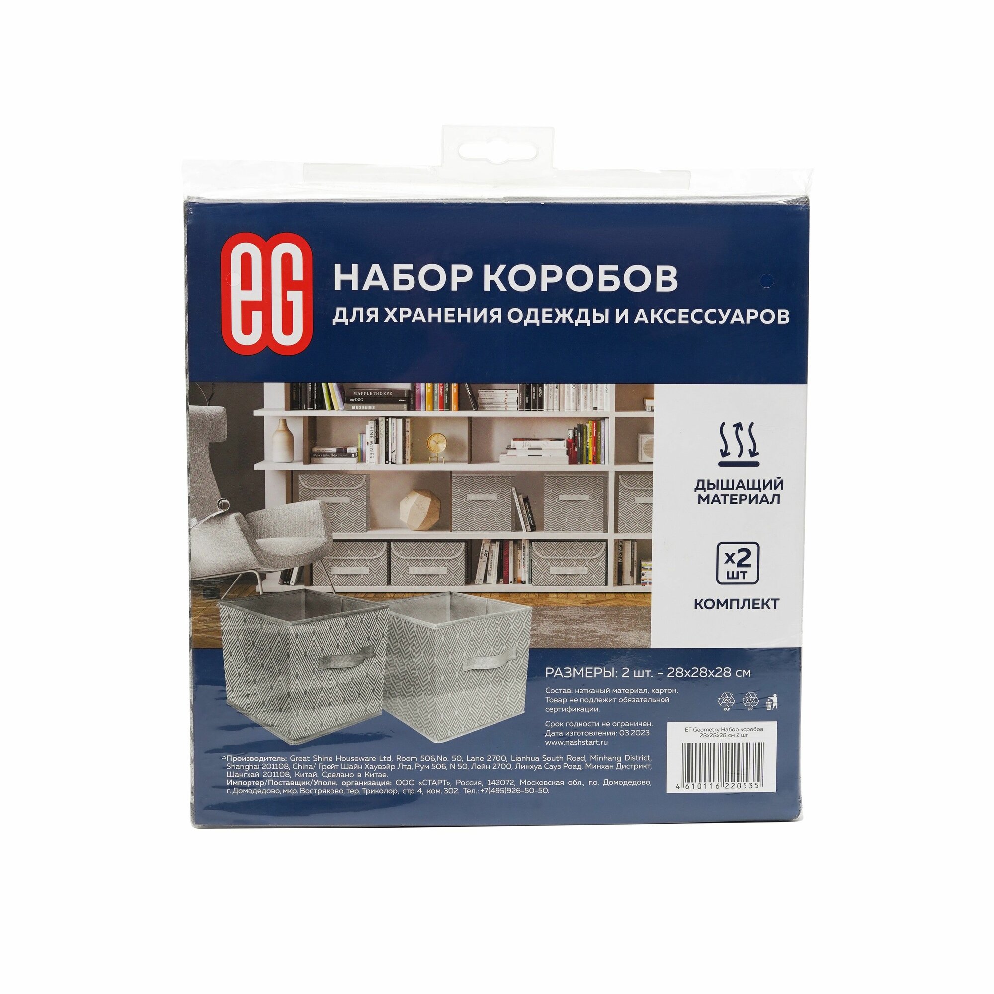 Короб для хранения вещей набор 2шт EG Еврогарант складной органайзер 28x28x28см, 22+22 литра интересное: