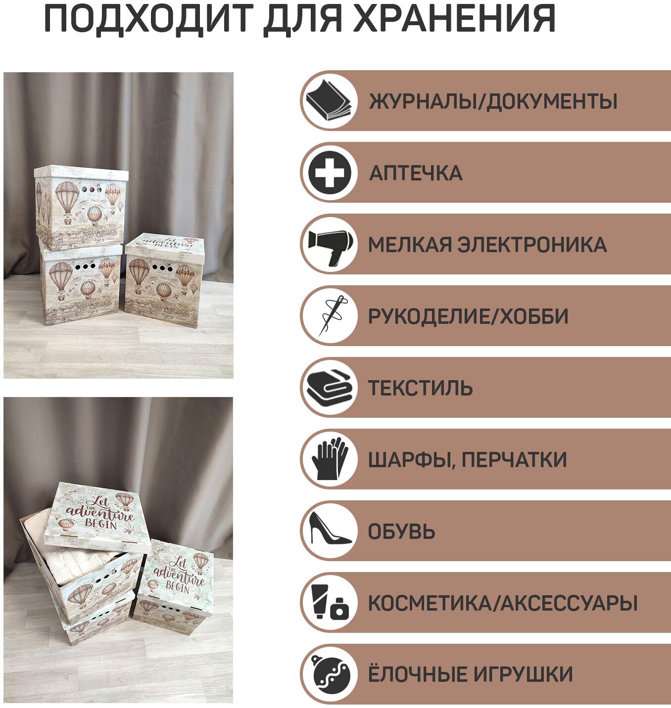 Короба картонные, 28*38*31.5 см, набор 3 шт., TRAVELLING AIR интересное:
