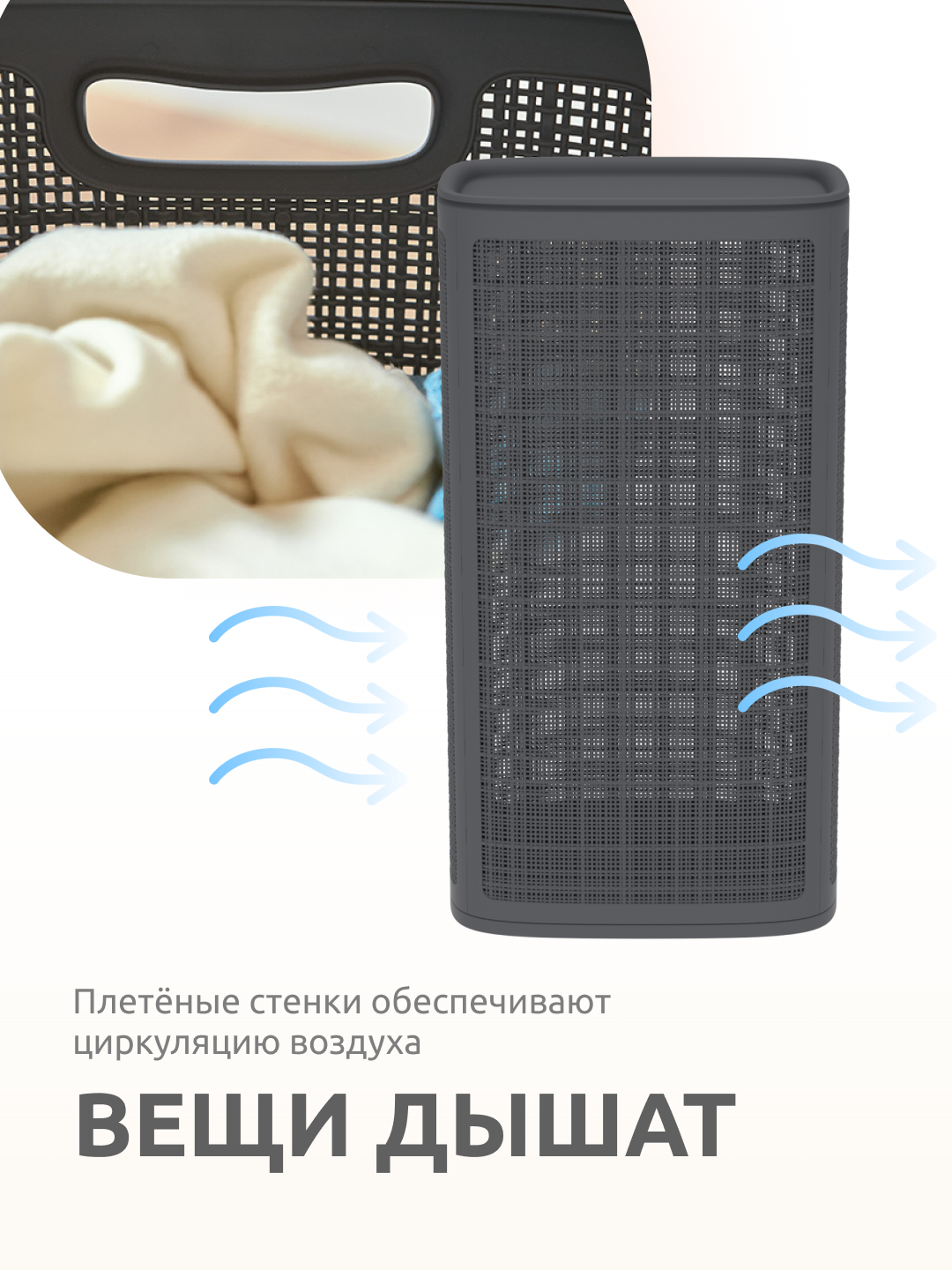 Корзина для белья Альт-пласт "Лён", 100 литров, графит, сборная