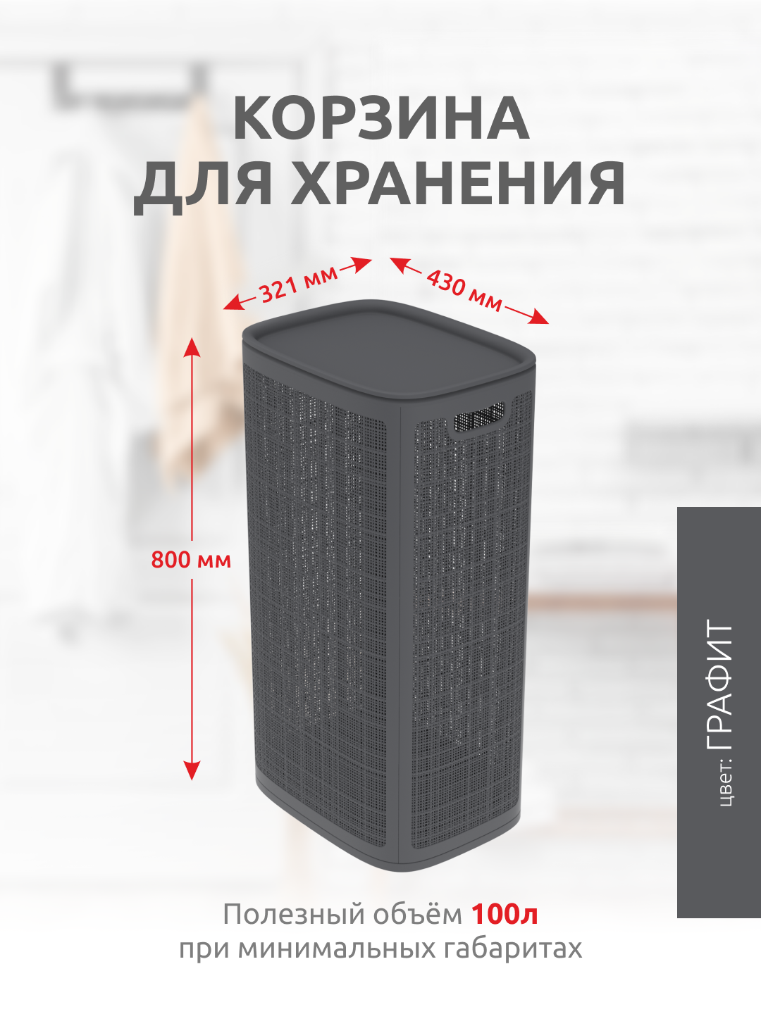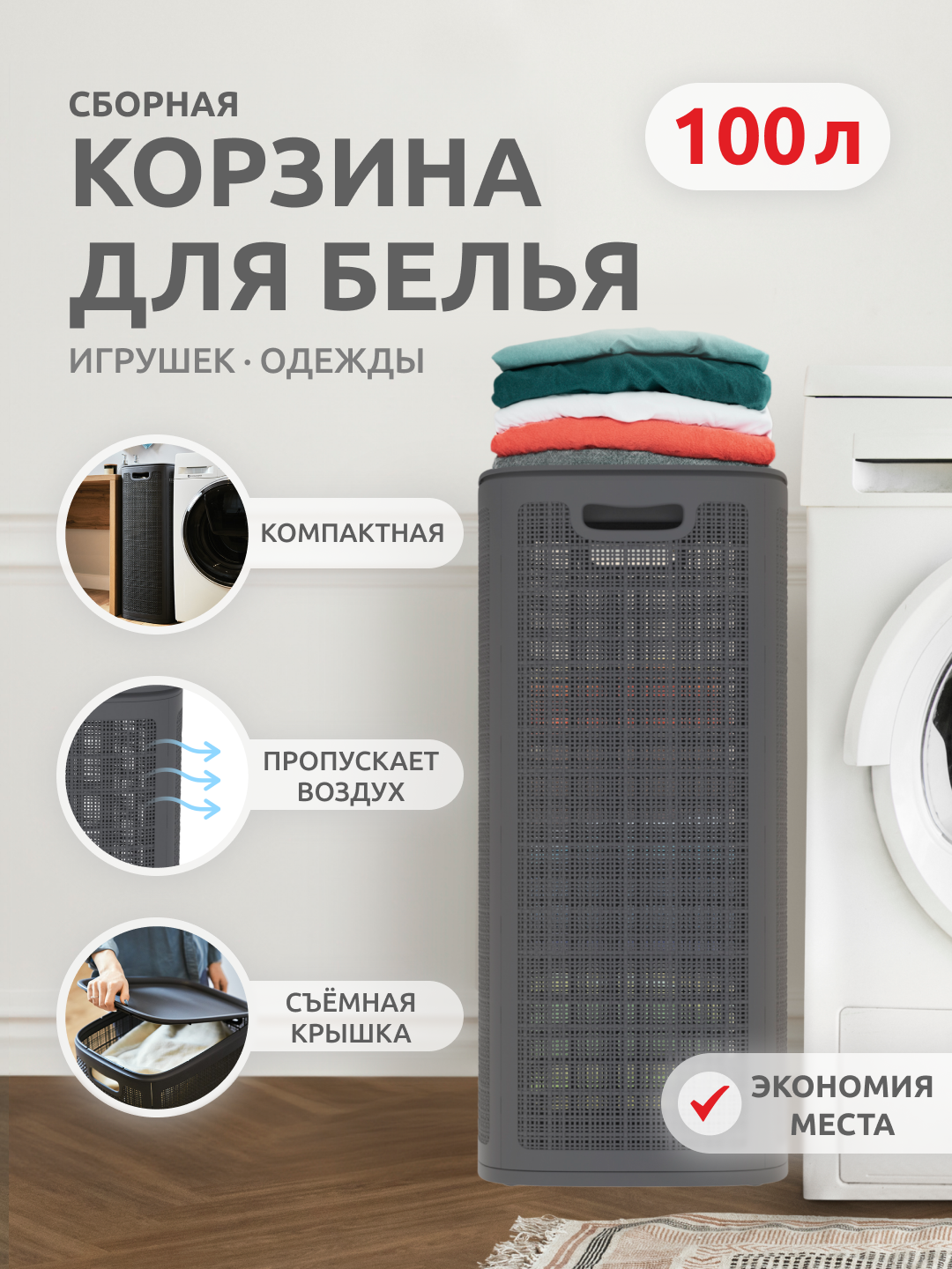 Корзина для белья «Лён», 100л, графит, Альт-Пласт, сборная, полипропилен