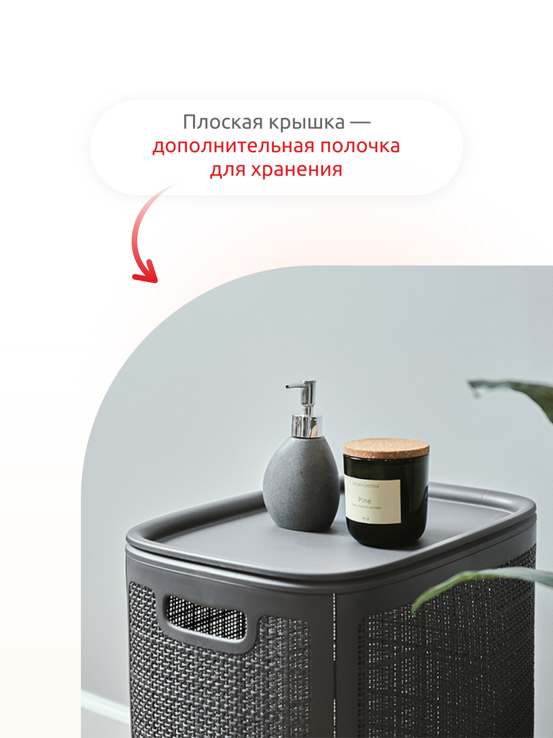 | Особенности | плетеная / ручки для переноски / с крышкой / складной / узкая |