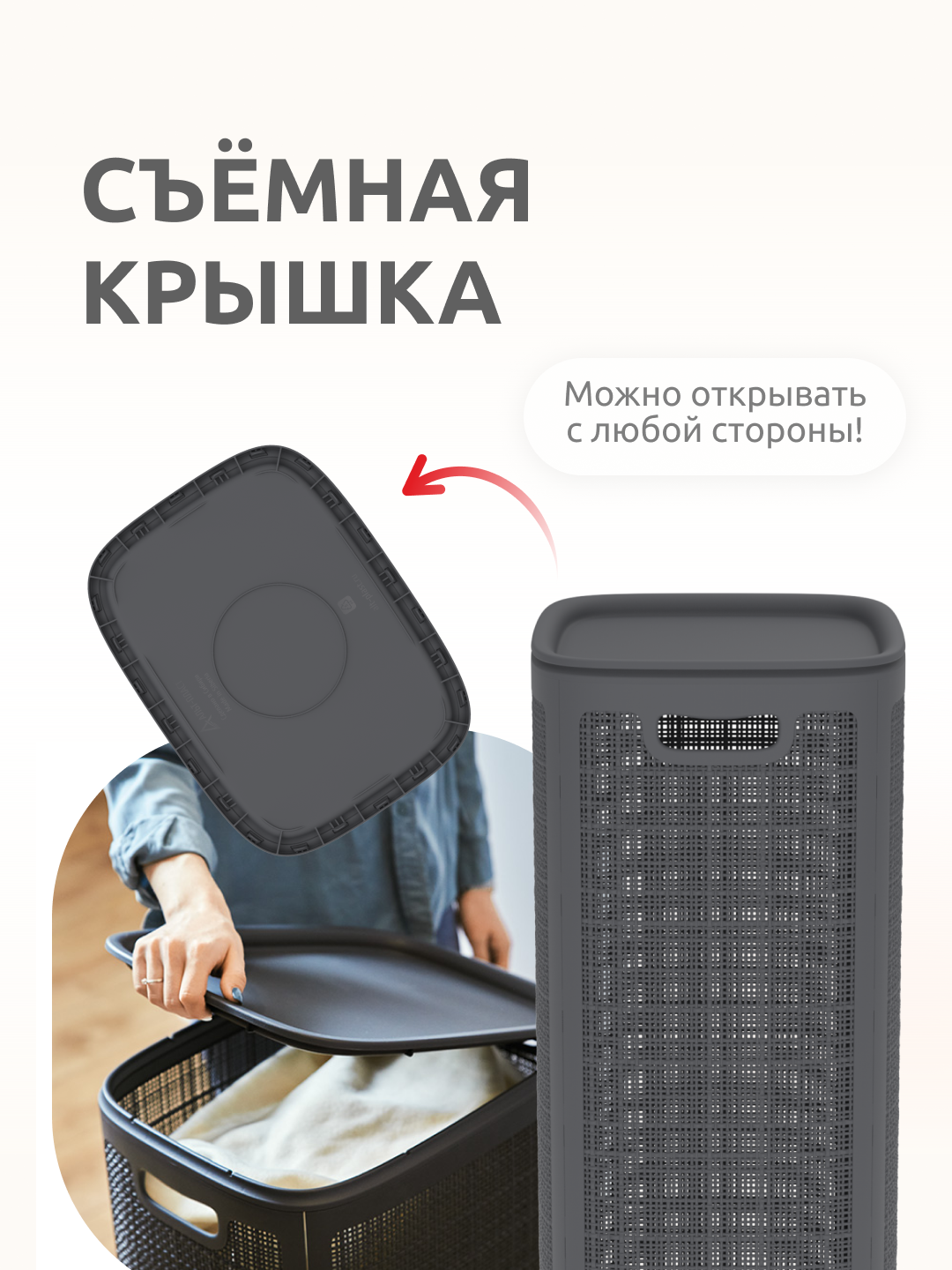 Купить Плетёная корзина для белья «Лён» 100л (графит)