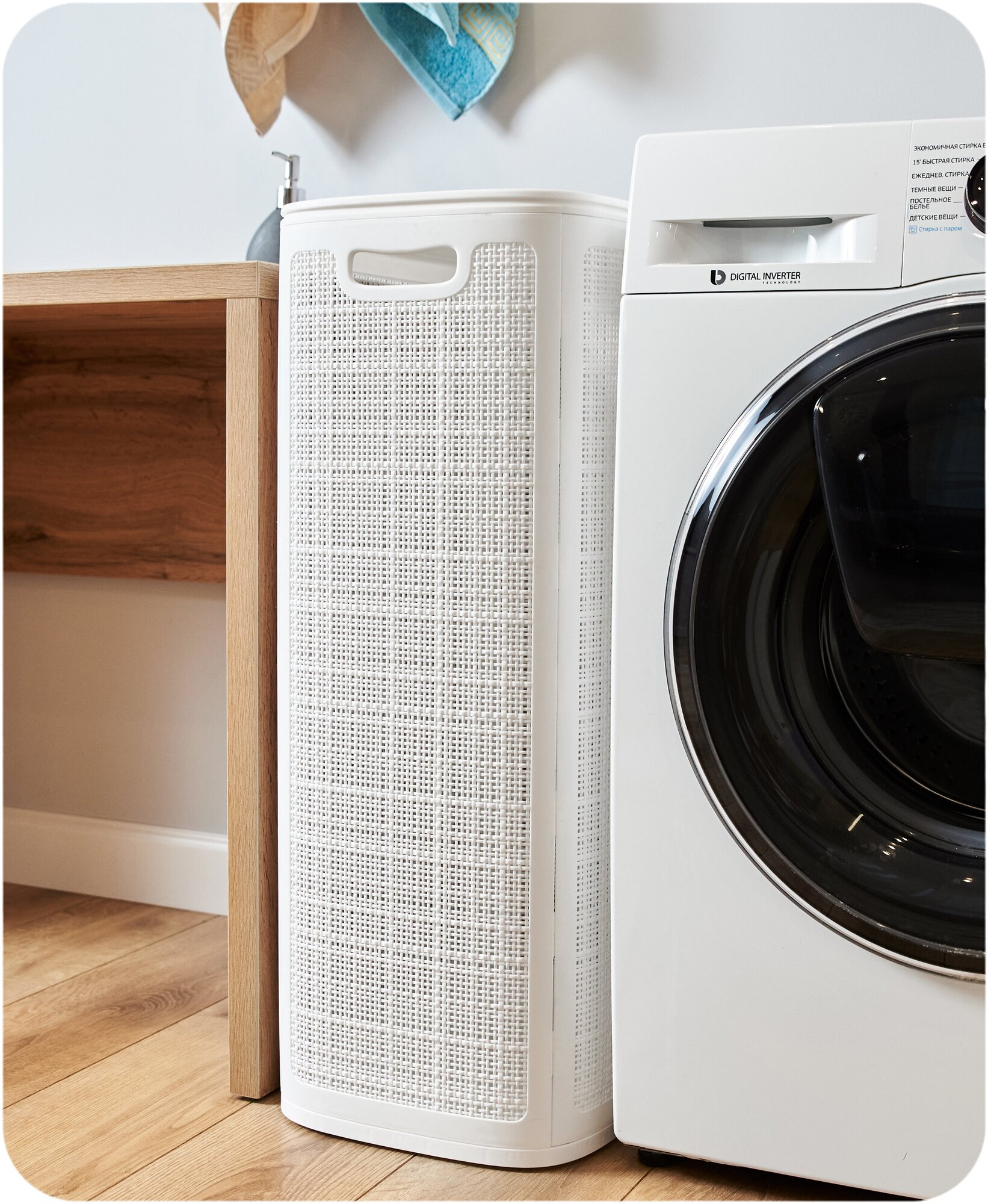 Корзина для белья «Лён», 100л, белый, Альт-Пласт, сборная, полипропилен