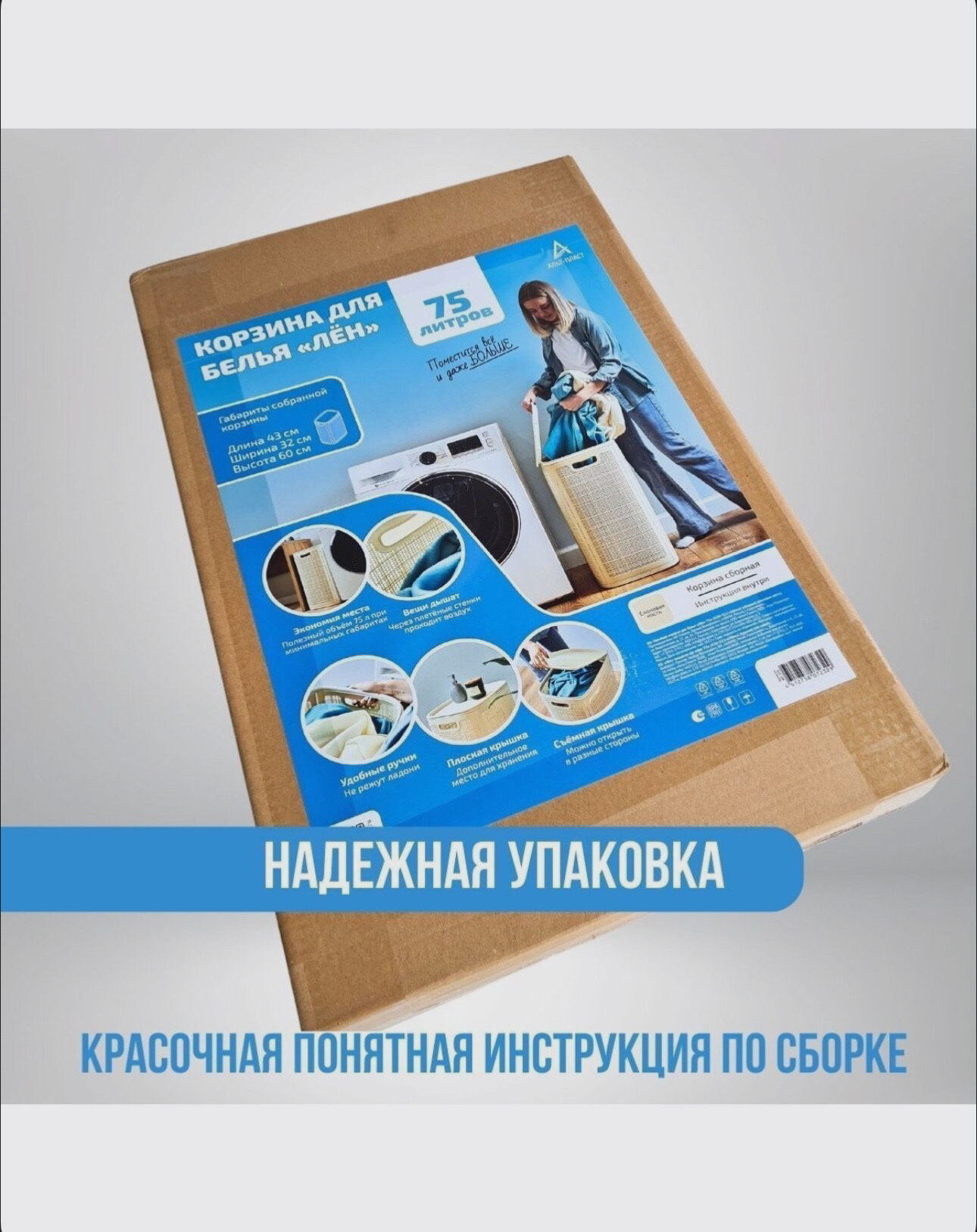 Плетёная корзина для белья сборная Лён альт-пласт 75л слоновая кость