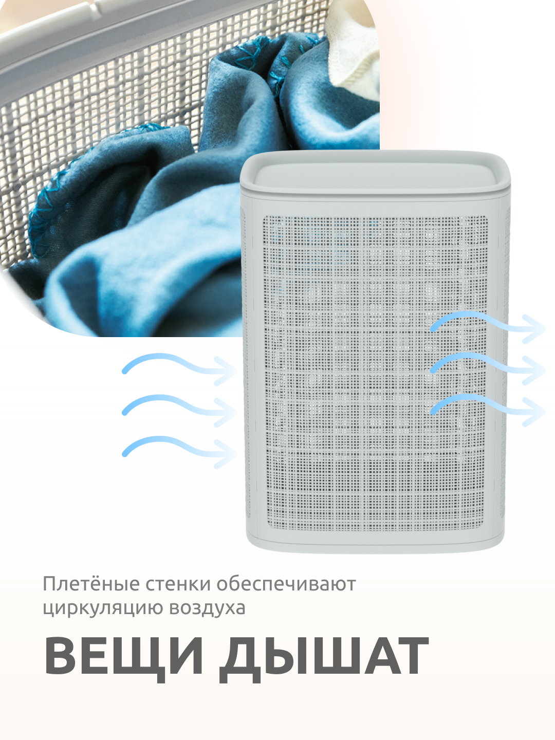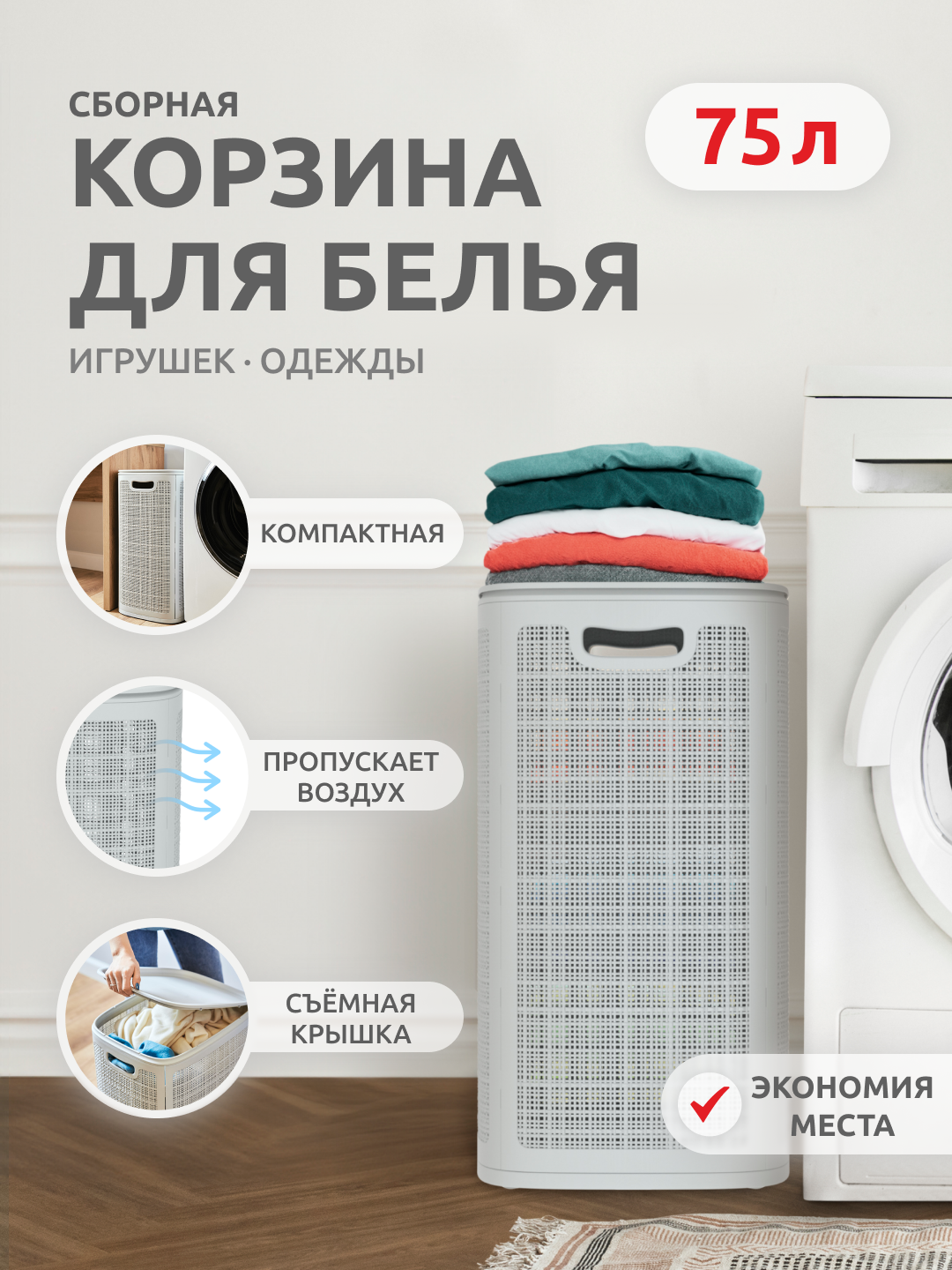Корзина для белья «Лён», 75л, серый, Альт-Пласт, сборная, полипропилен