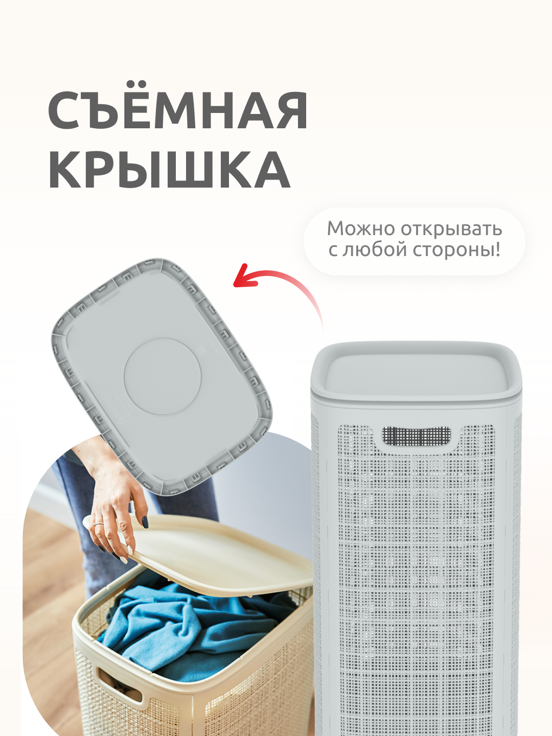 Корзина для белья «Лён», 75л, слоновая кость, Альт-Пласт, сборная, полипропилен