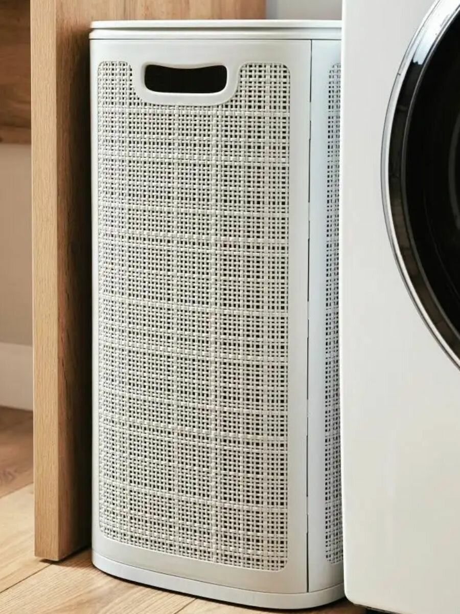 | Особенности | плетеная / ручки для переноски / с крышкой / складной / узкая |