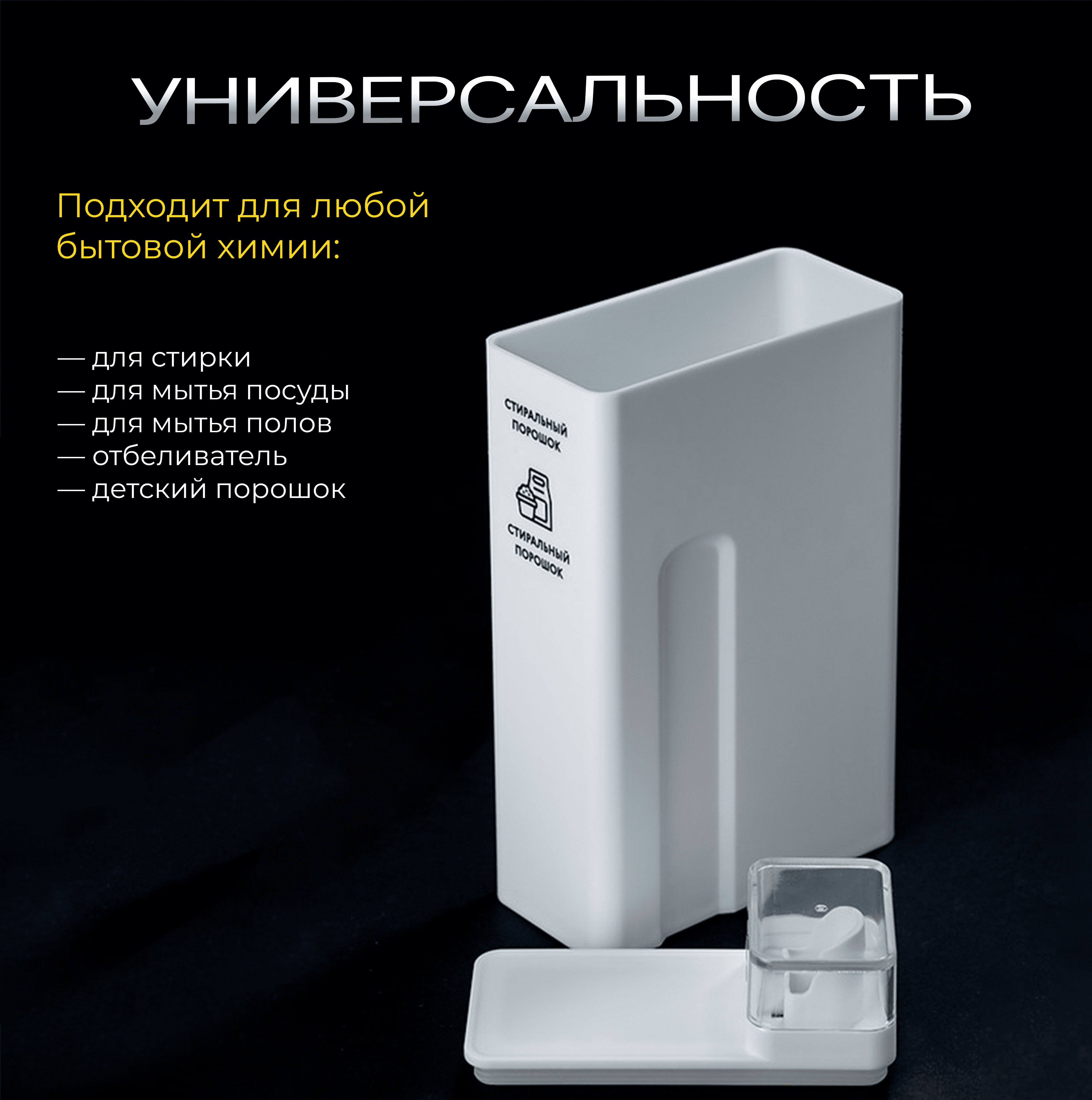 Контейнер для порошка стирального и геля, емкость для хранения порошка стирального, 1000 мл, белый, 1 шт.