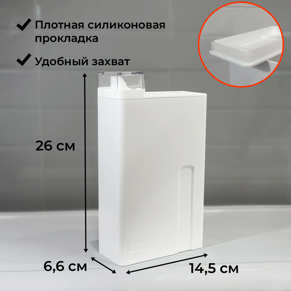 Контейнер для порошка стирального и геля, емкость для хранения порошка стирального, 1000 мл, белый, 1 шт.