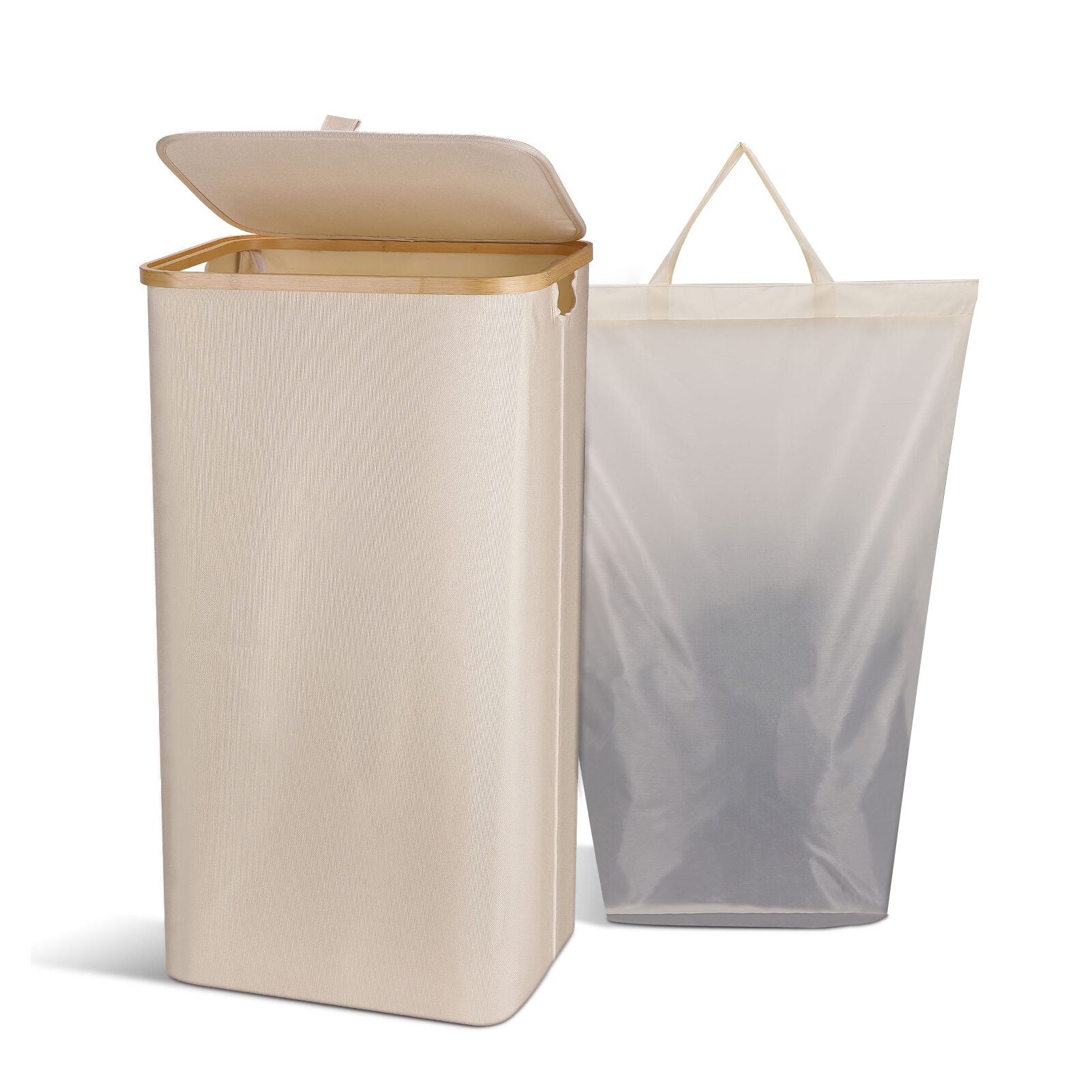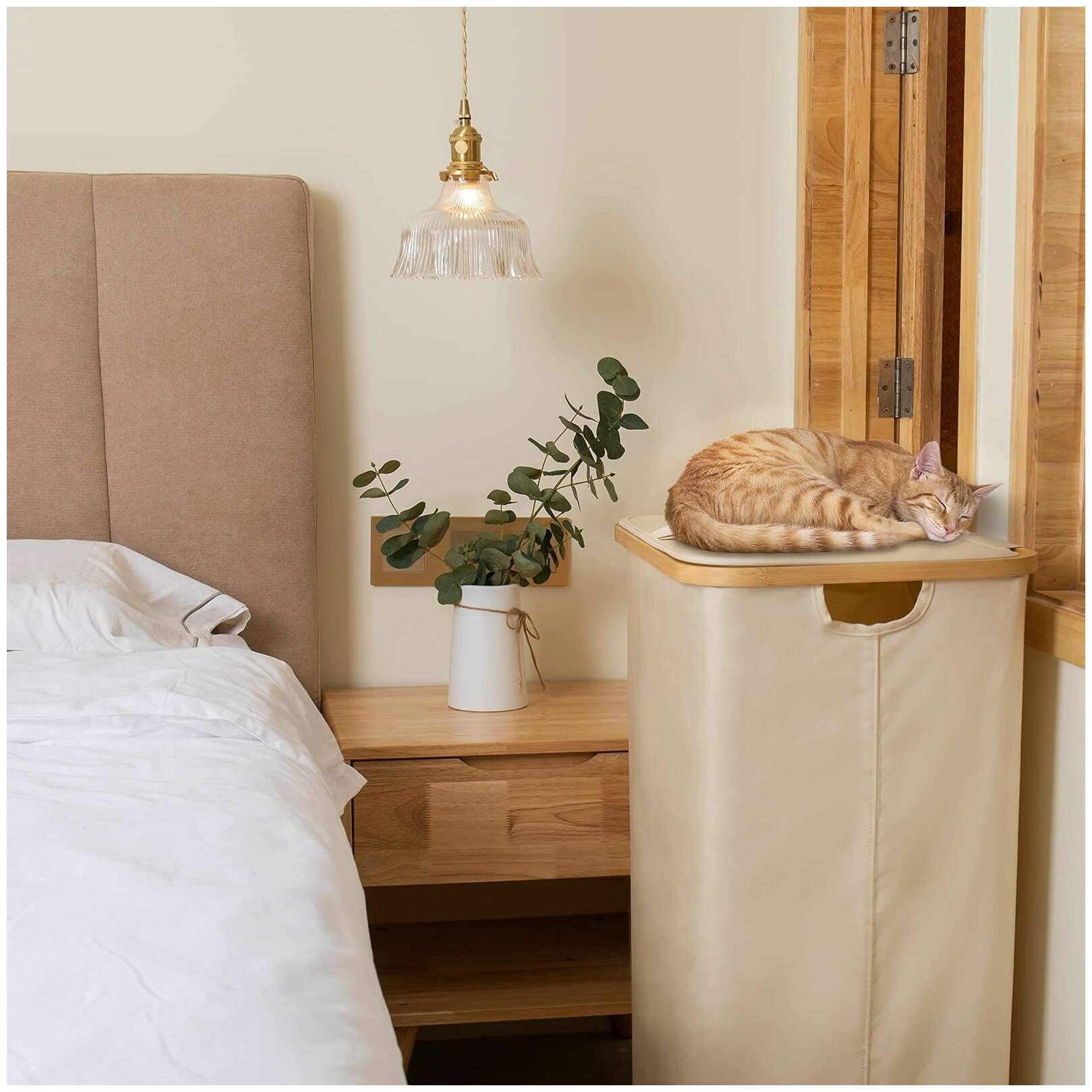 Корзина для белья с крышкой в ванную из водонепроницаемой ткани и складным каркасом из бамбука