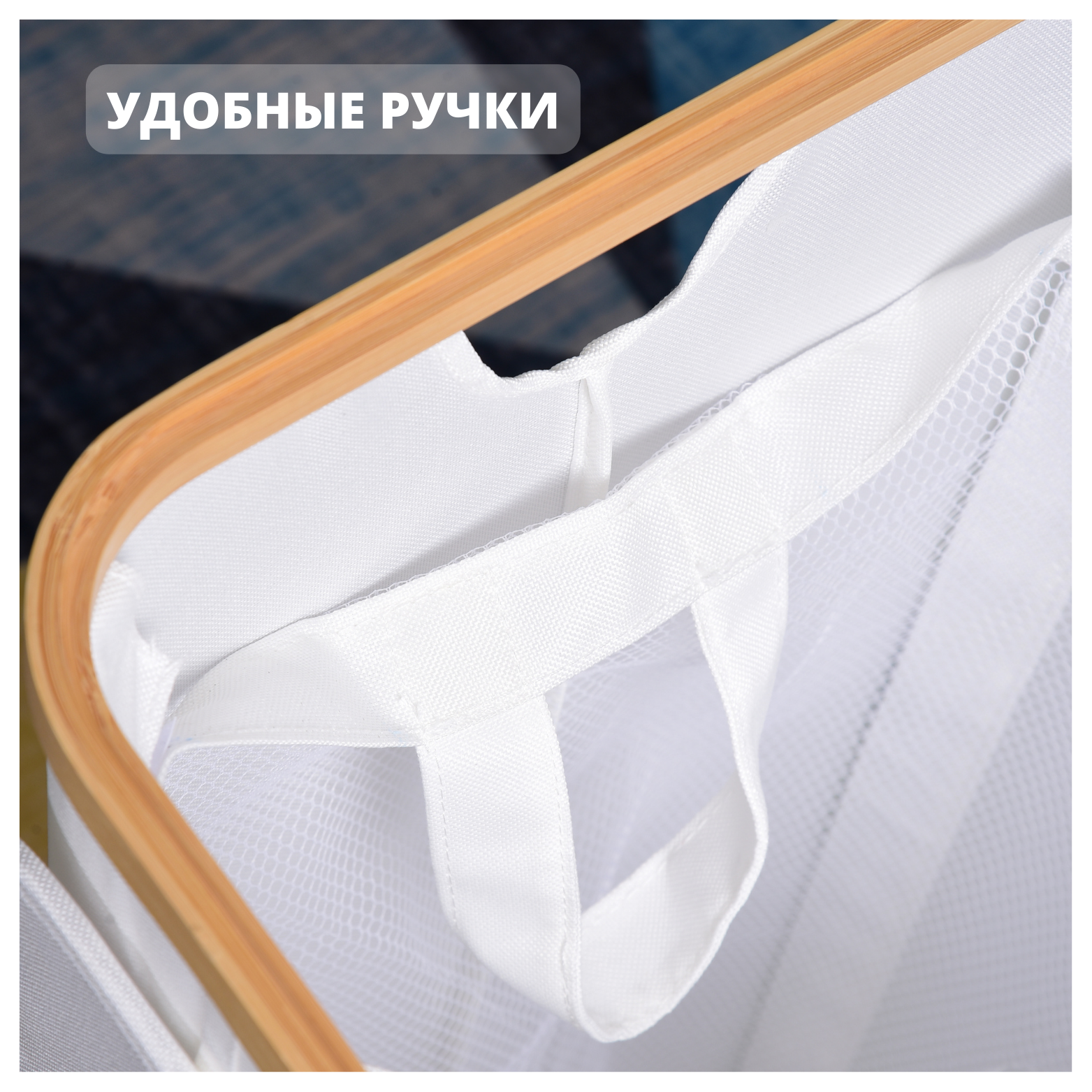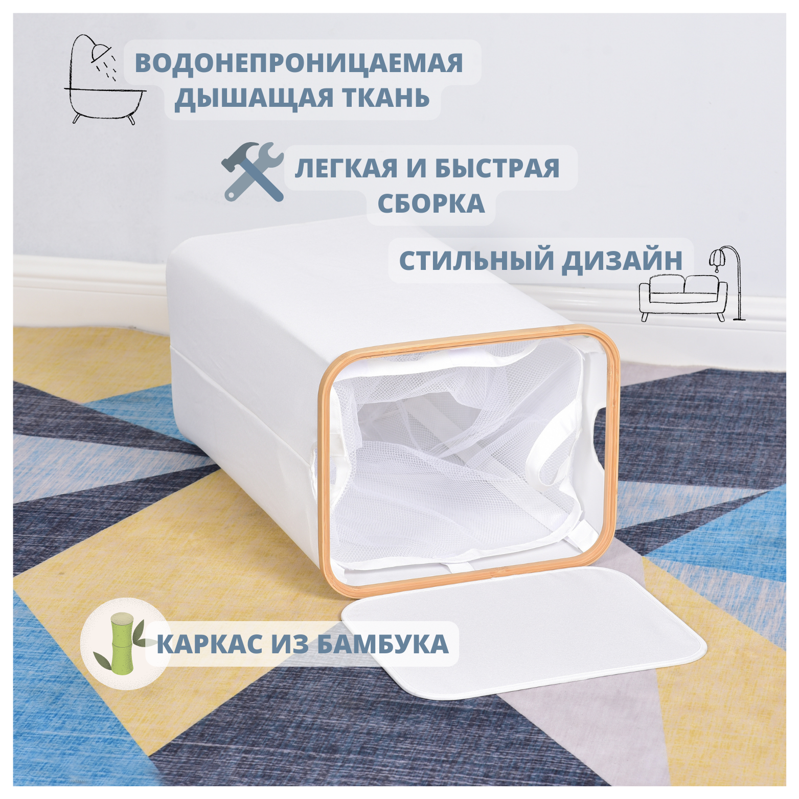 Корзина для белья из водонепроницаемой ткани и складным каркасом из бамбука