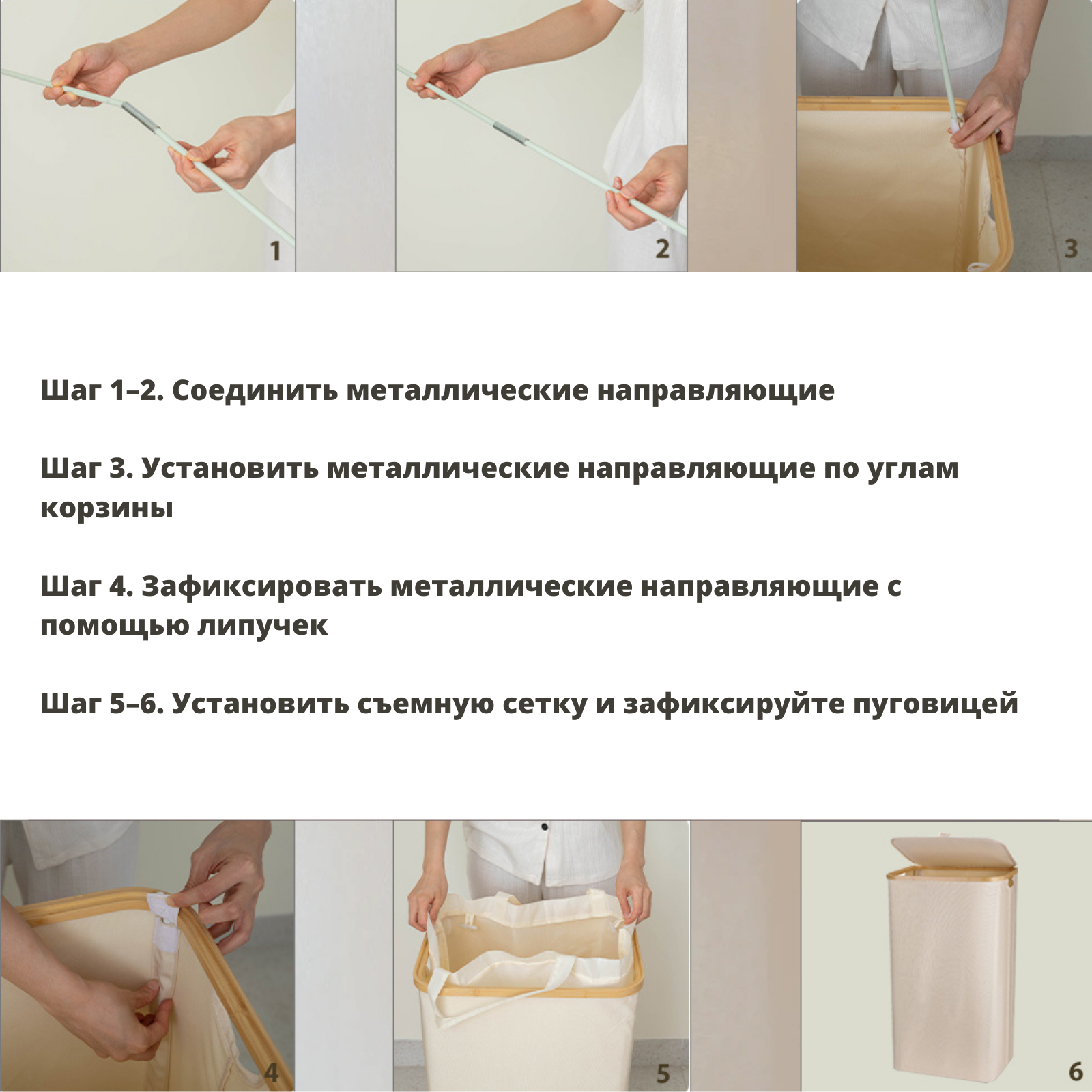| Комплектация | Корзина для белья с крышкой - 1 шт. Мешок сетчатый съемный 1 шт. Направляющие - 4 шт. |