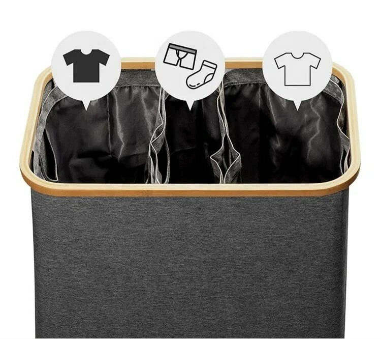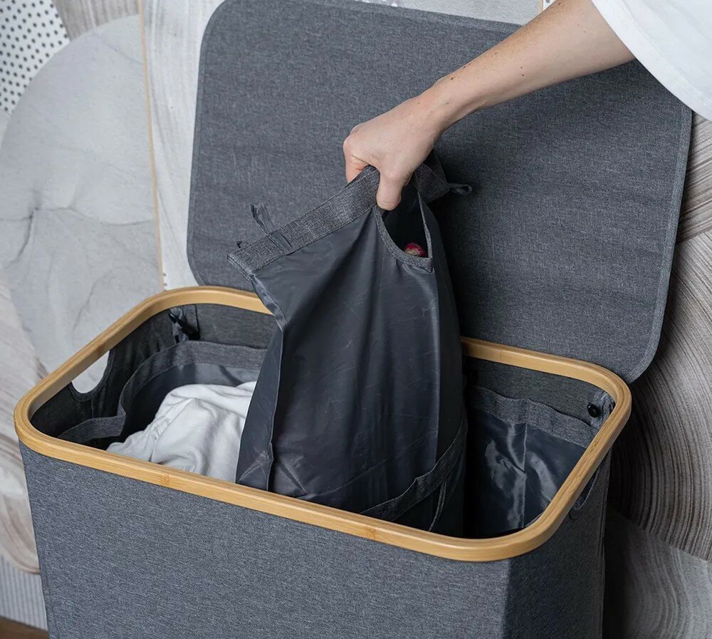 Корзина для белья из водонепроницаемой ткани и складным каркасом из бамбука