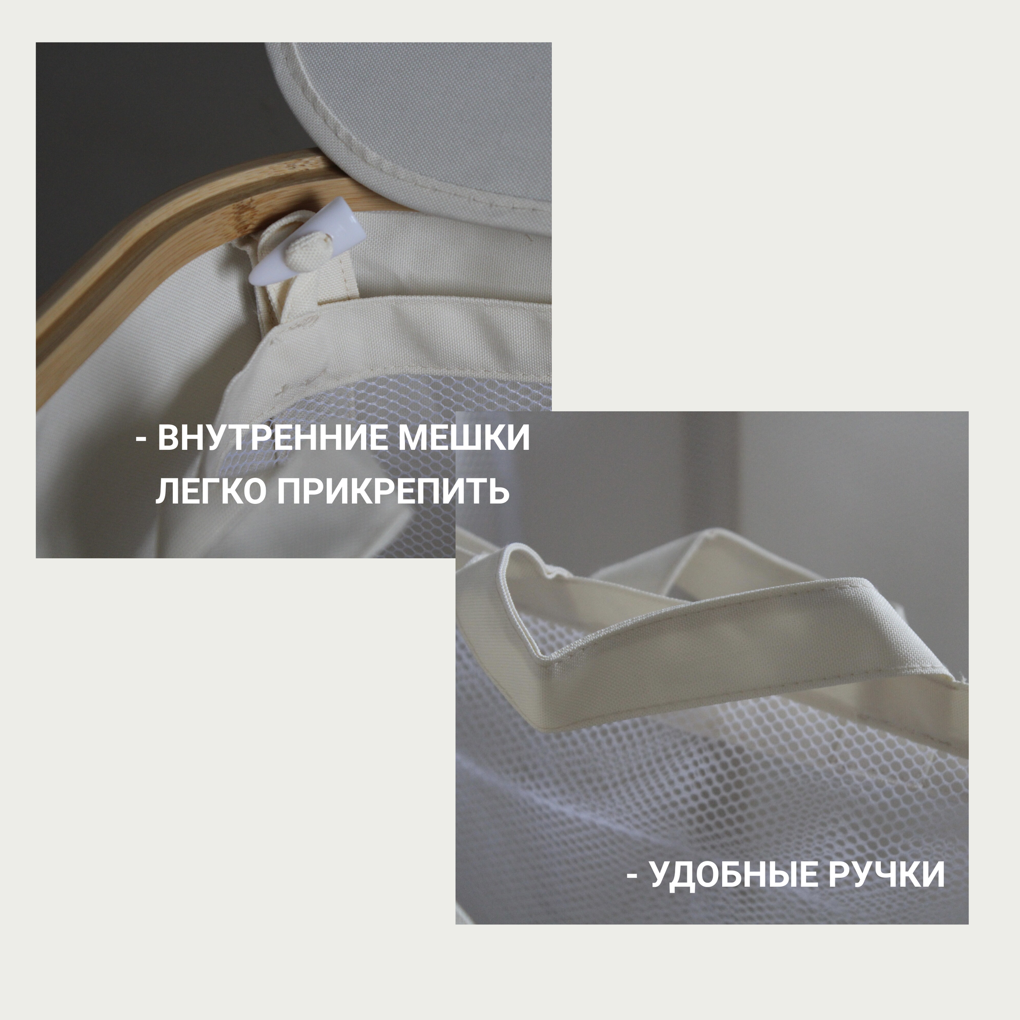 Корзина для белья с тремя внутренними сетчатыми мешками