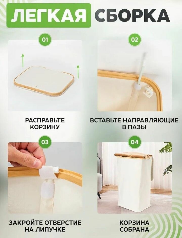 Корзина для белья из водонепроницаемой ткани и складным каркасом из бамбука
