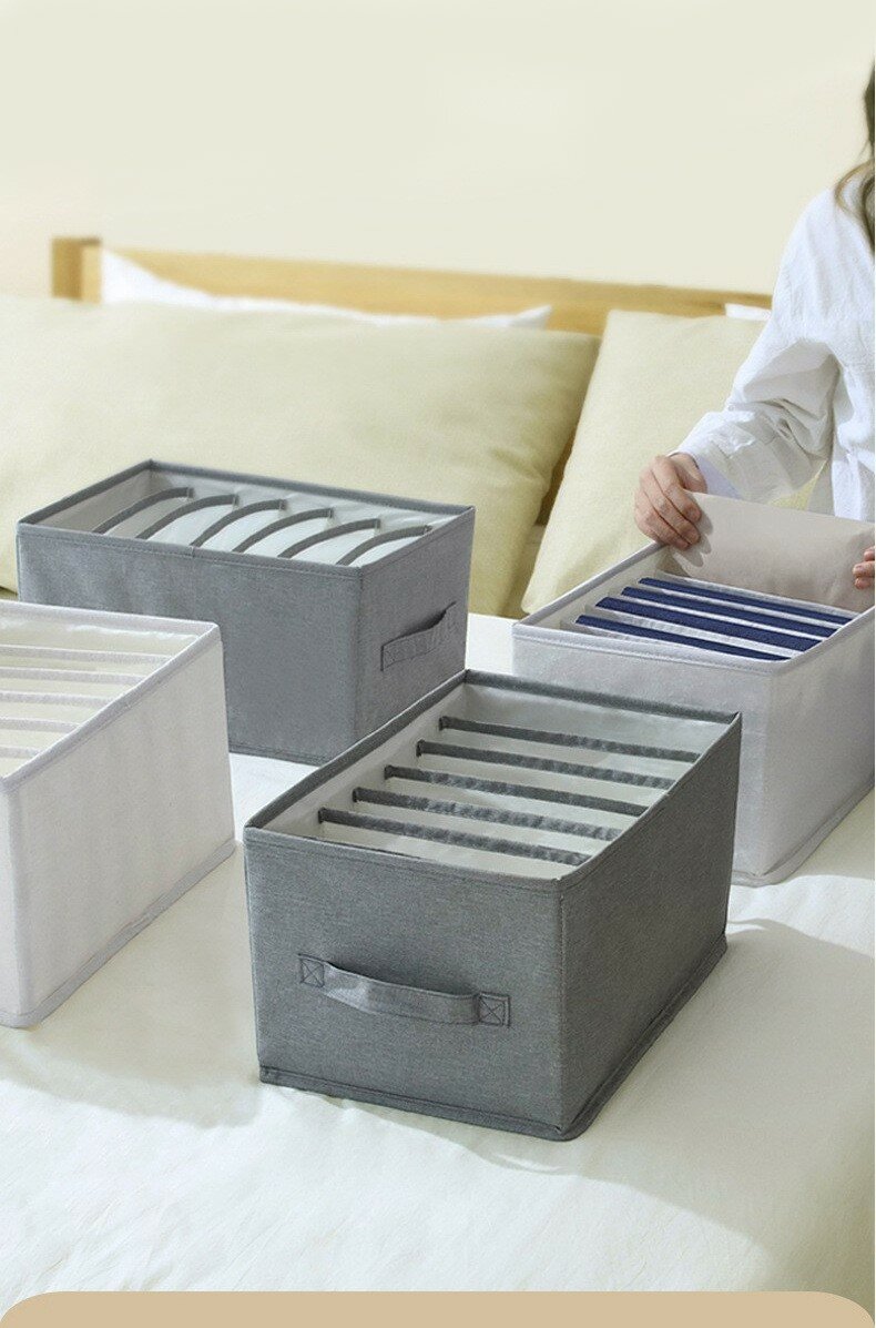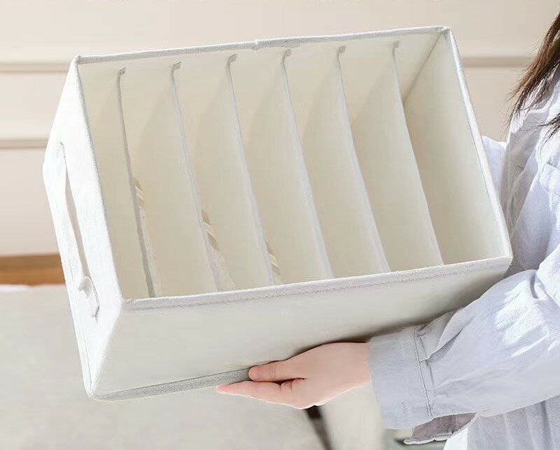 Органайзер для хранения вещей одежды, коробка для полотенец белья 7 отсеков, ящик для хранения 36х25х20см, бежевый интересное: