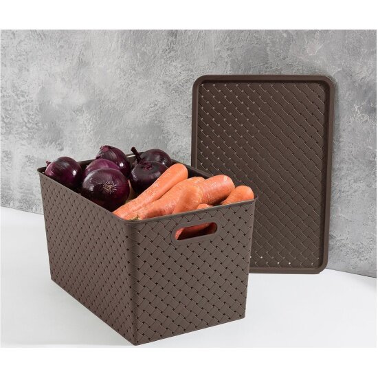 Корзинка, коробка для хранения, с крышкой Береста 14 л 35х24,5х20,5 см EL Casa, цвет темно-коричневый