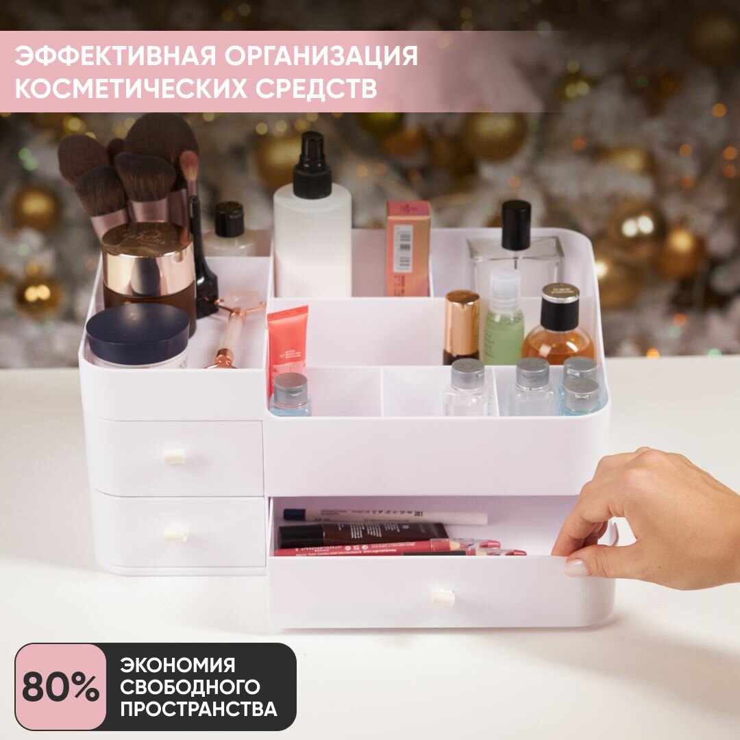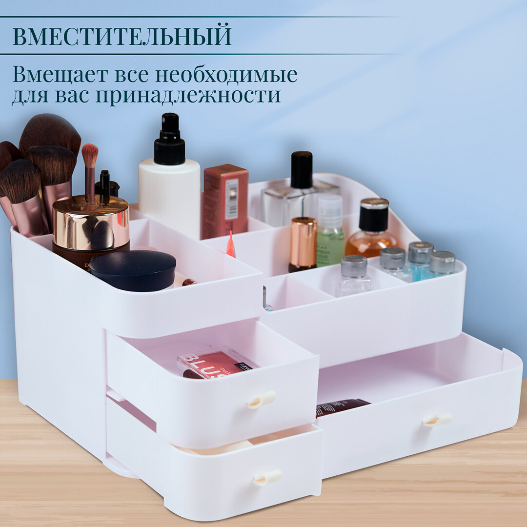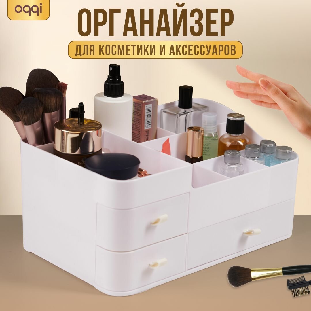Органайзер для косметики большой Oqqi, с выдвижными ящиками, 5 секций, 34х20х30 см, белый