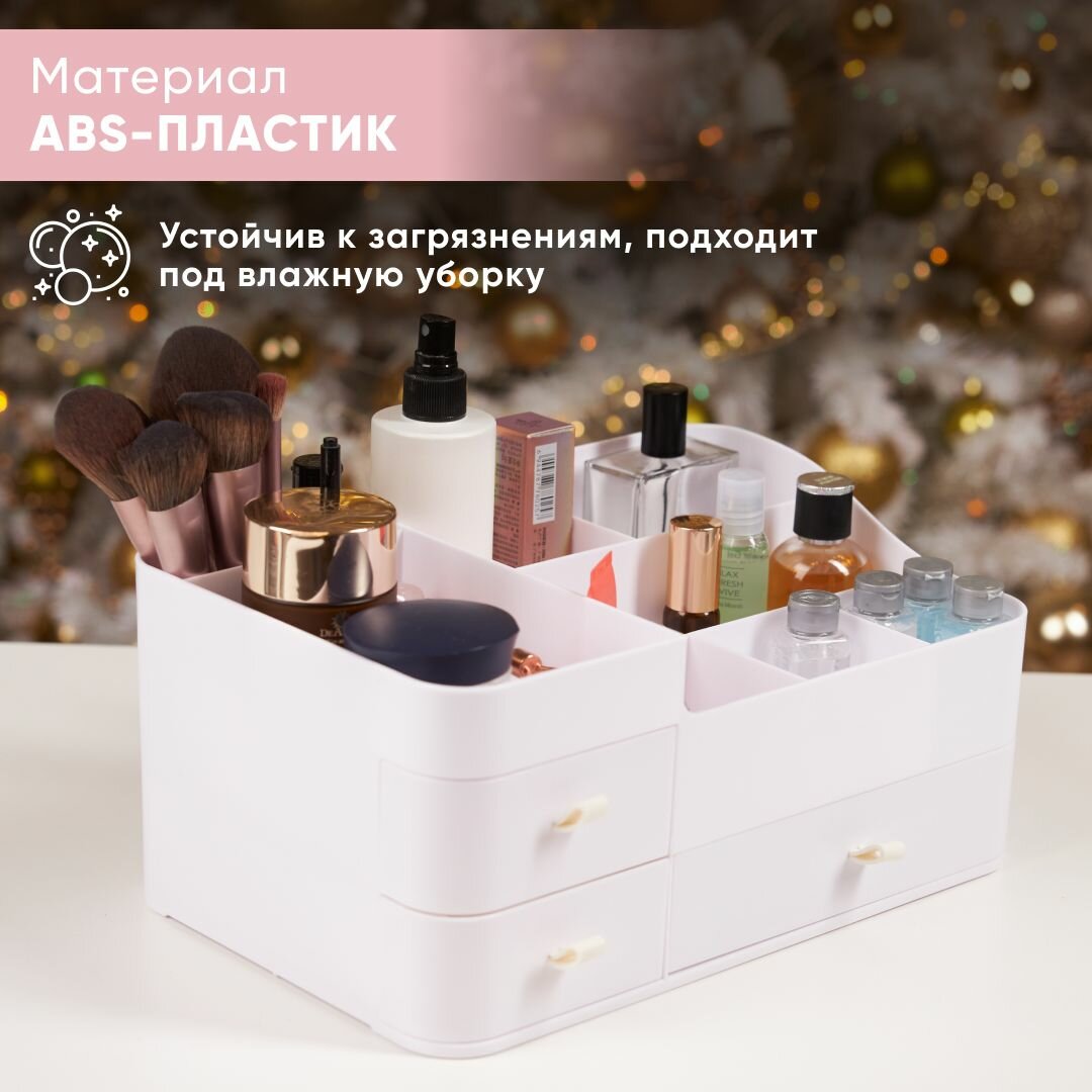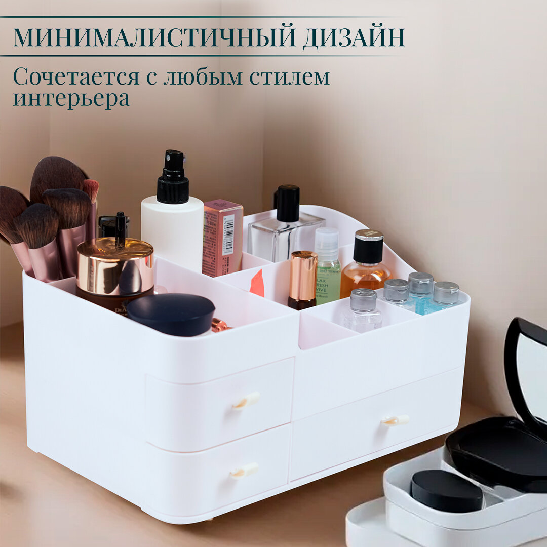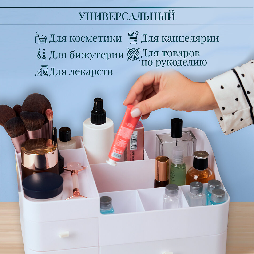 Органайзер для косметики большой Oqqi, с выдвижными ящиками, 5 секций, 34х20х30 см, белый