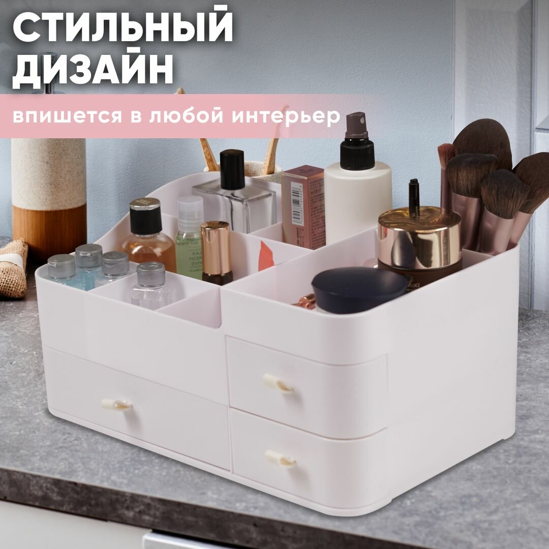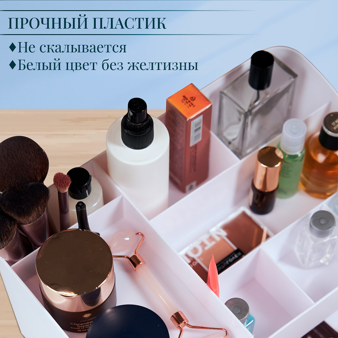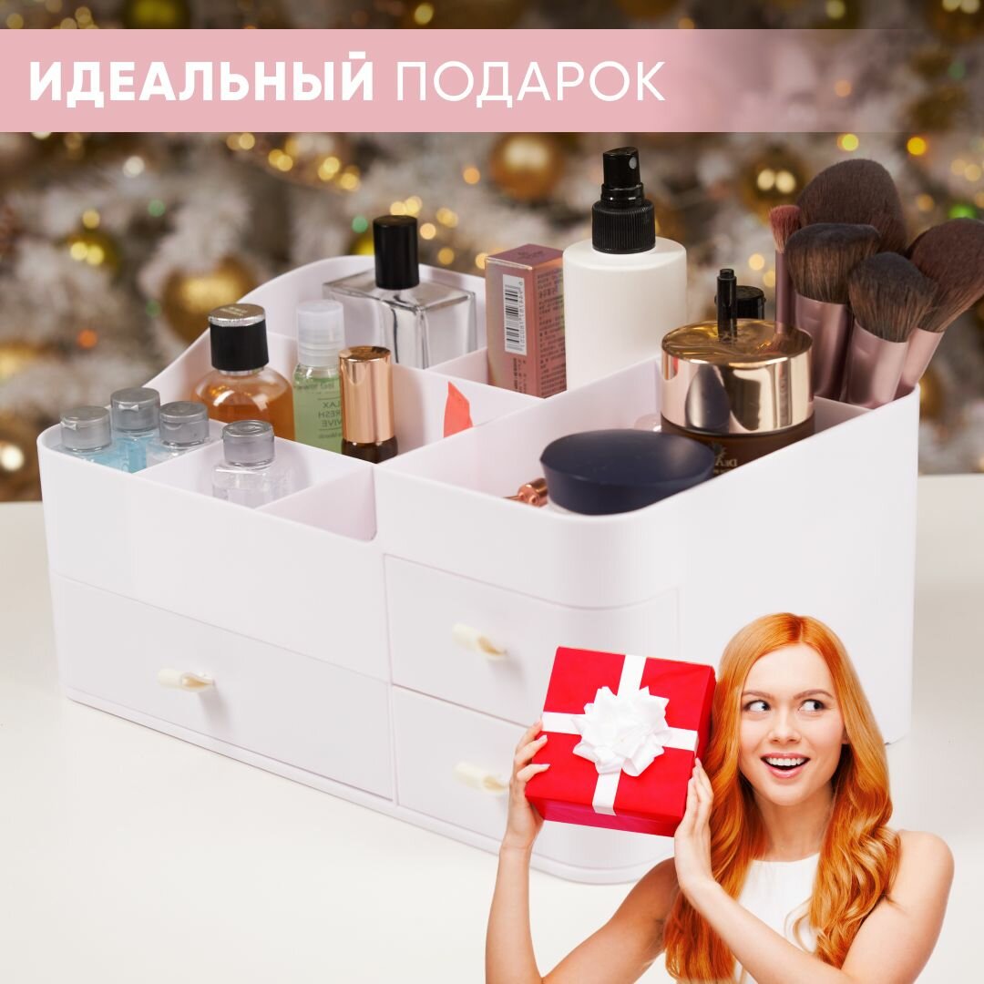 Органайзер для косметики большой Oqqi, с выдвижными ящиками, 7 секций, 19х21х35 см, белый