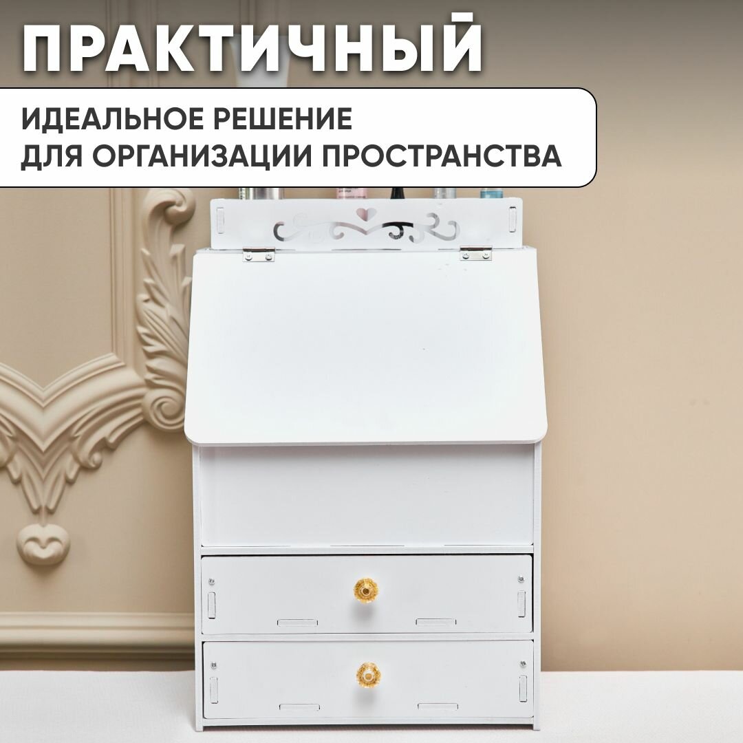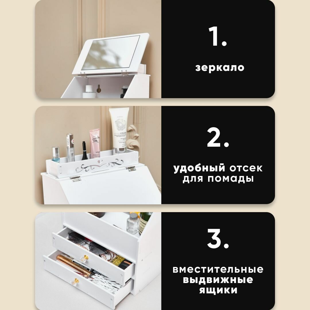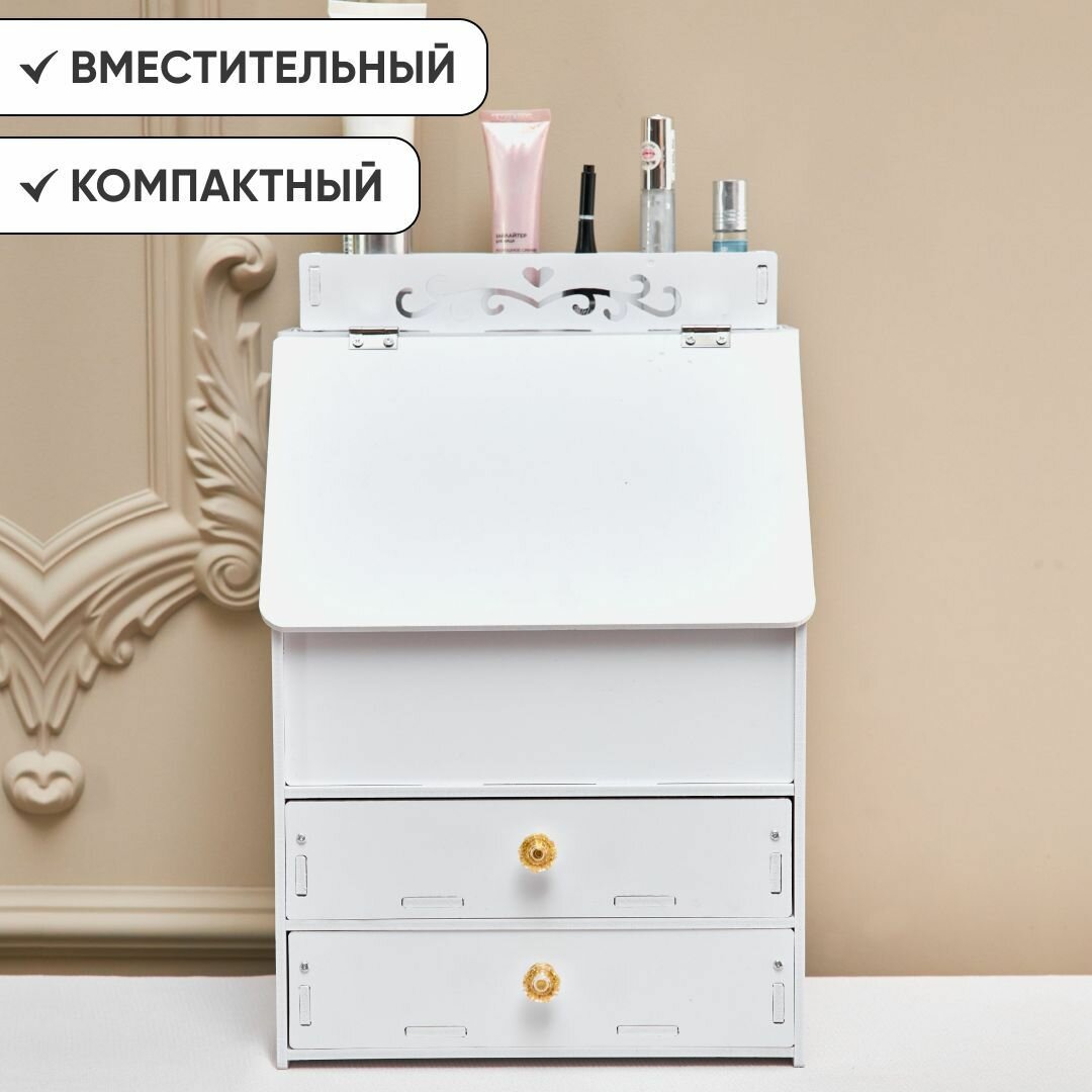 Органайзер для косметики с зеркалом OQQI, 3 секции, с выдвижным ящиком