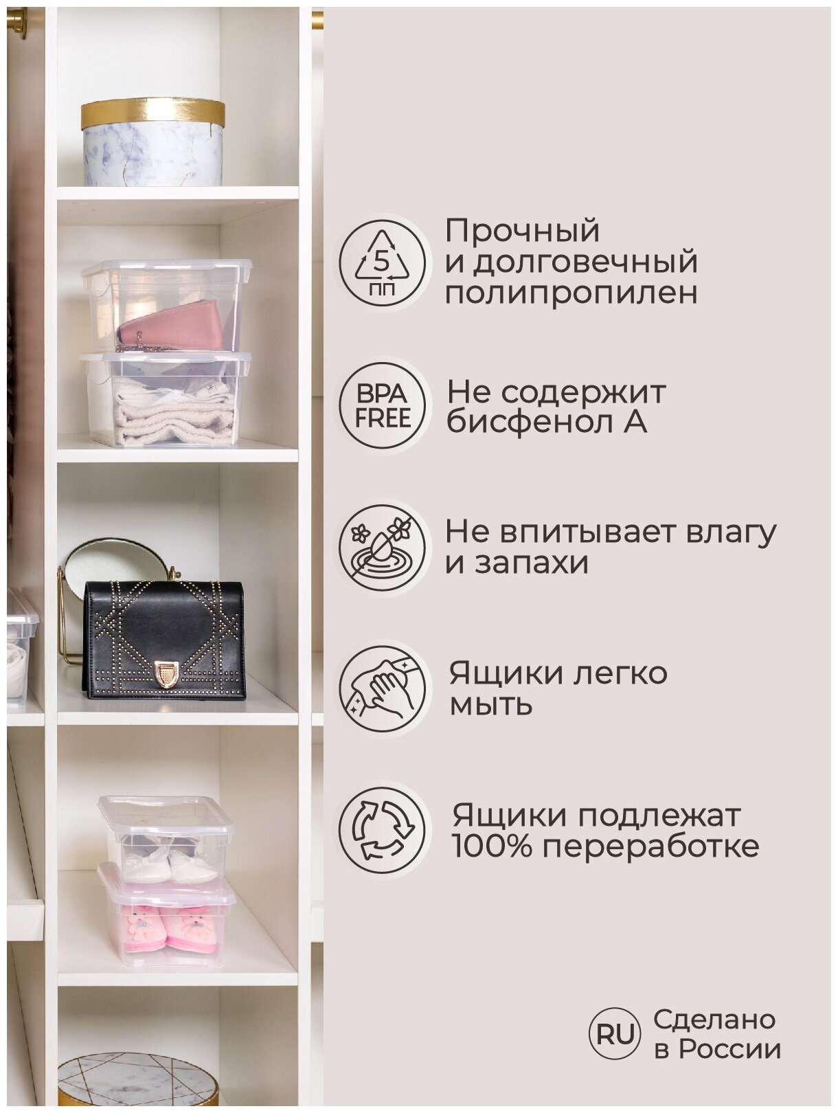 Коробки для хранения вещей пластиковые с крышкой набор 4 шт/ 2 л прозрачные, контейнер/органайзер для дома под мелочи, нижнее белье, игрушки