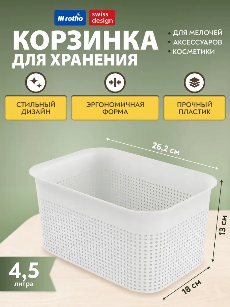 Корзинка для хранения вещей, мелочей, косметики Rotho Brisen S 4,5 литра 26,2х18х13 см. интересное: