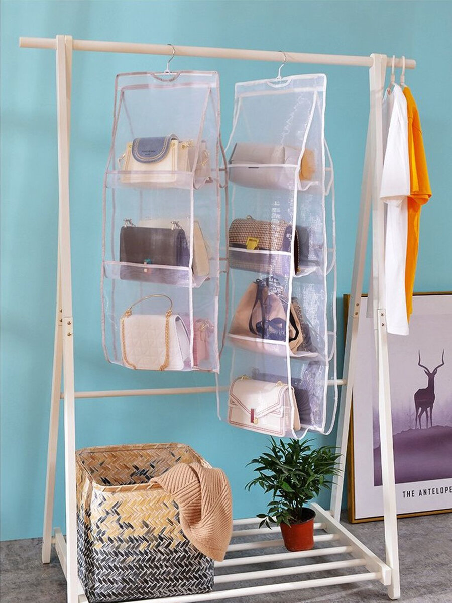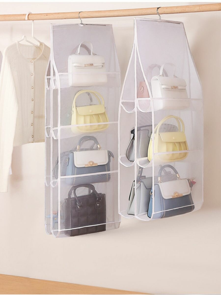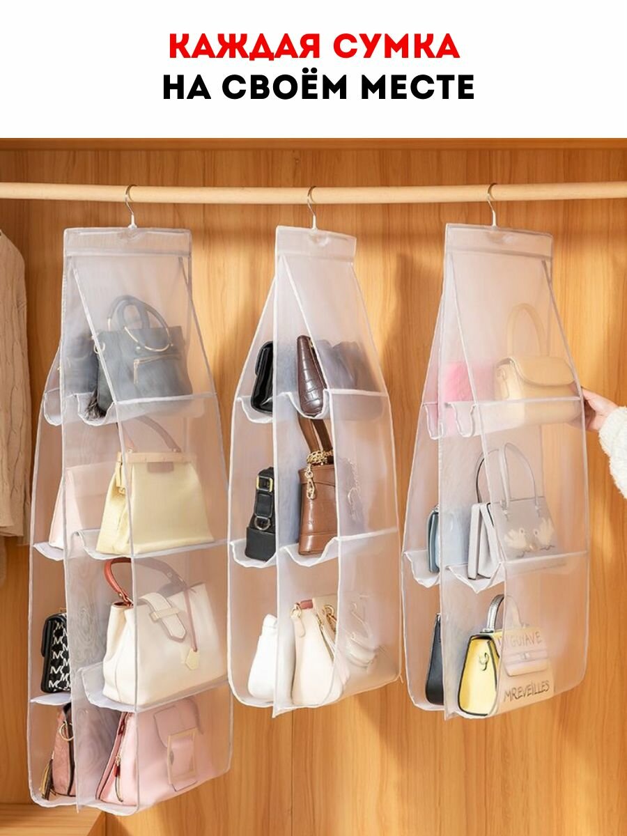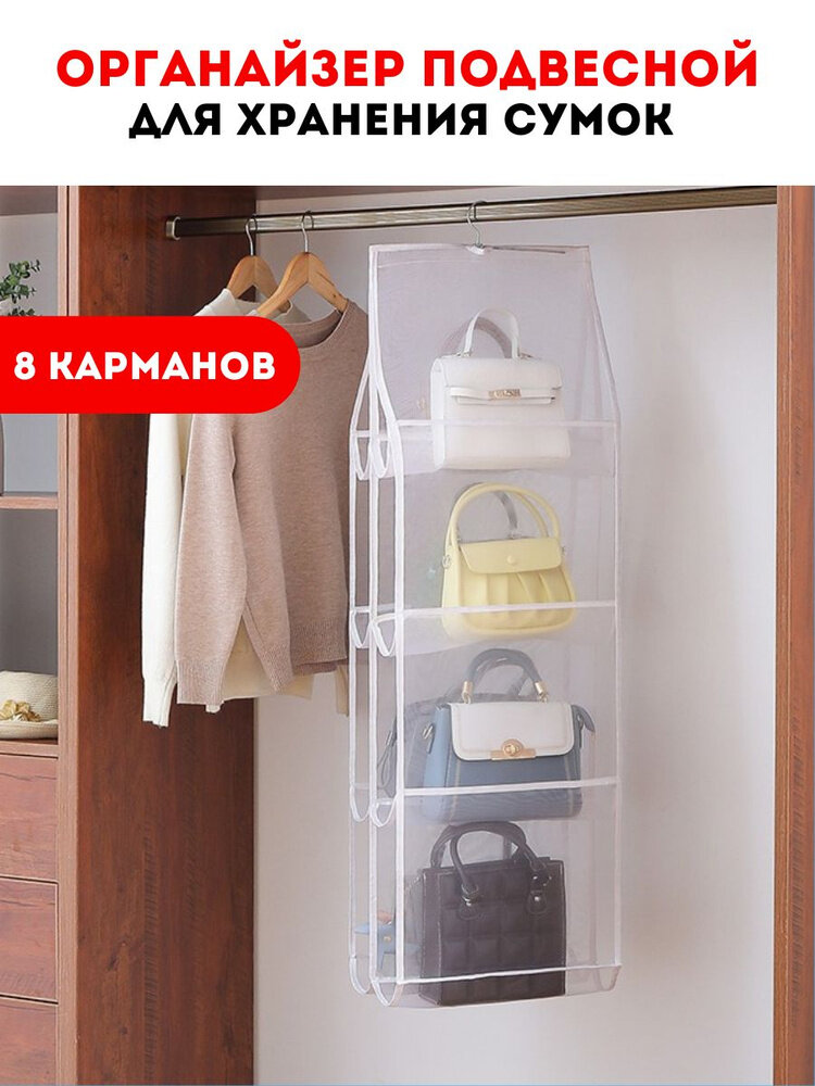 Купить Подвесной органайзер для хранения сумок и одежды, в гардероб, 4 полки, 8 секций, прозрачная