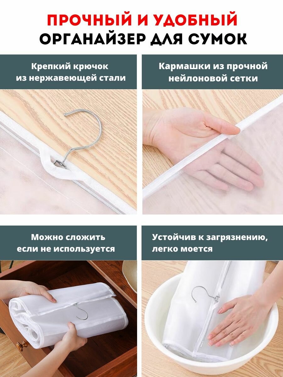 Подвесной органайзер для хранения сумок и одежды, в гардероб, 4 полки, 8 секций, прозрачная интересное: