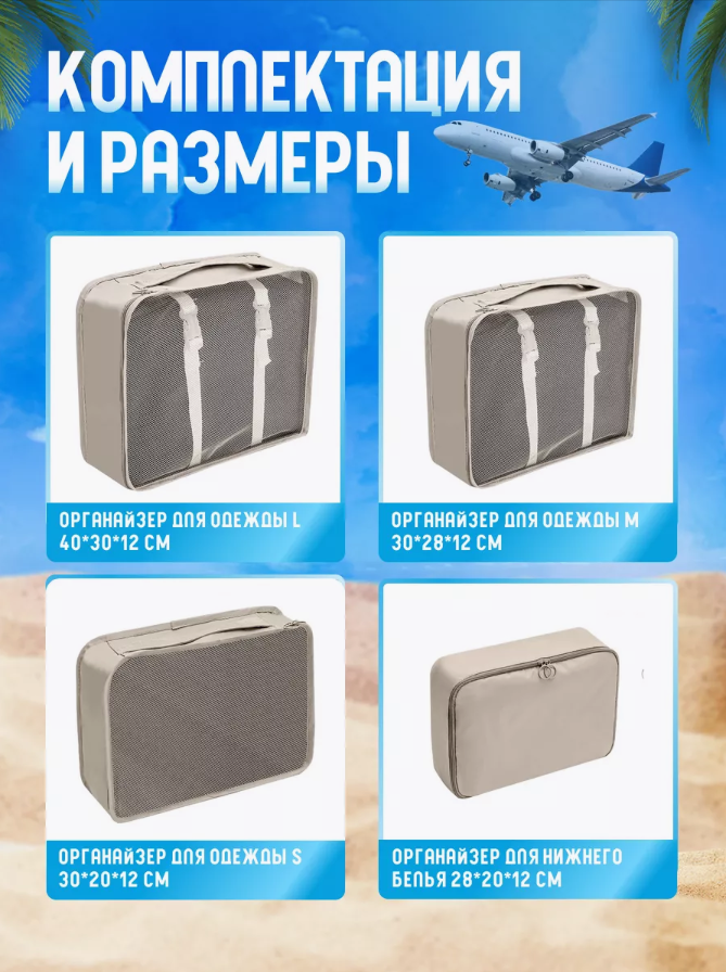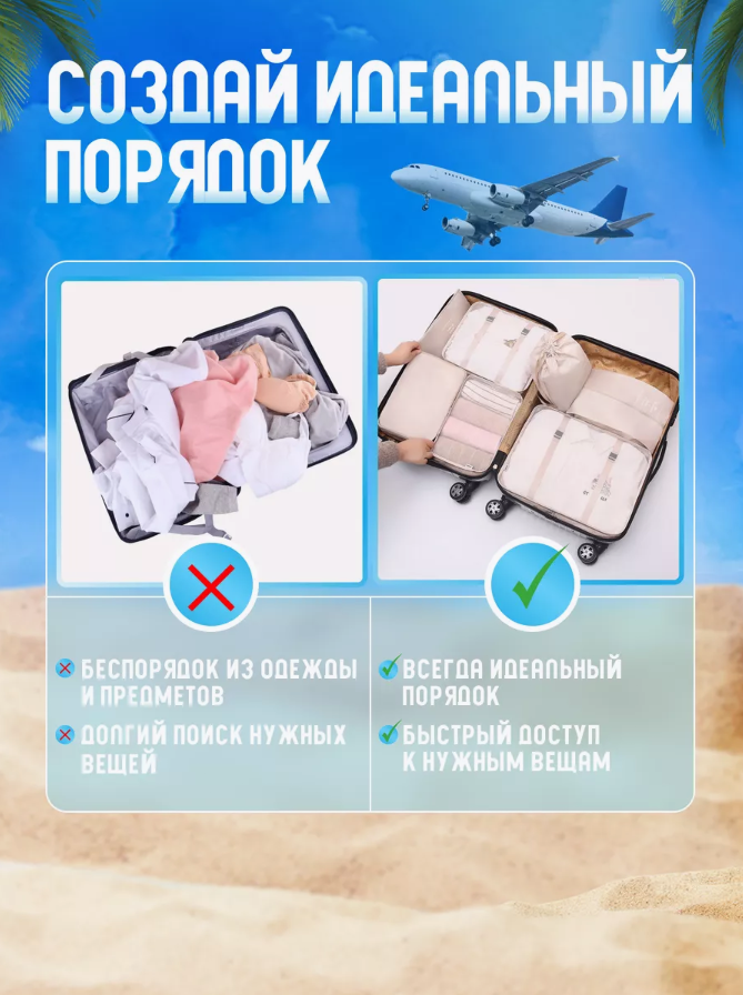 Органайзер дорожный для чемодана 8 в 1, бежевый интересное: