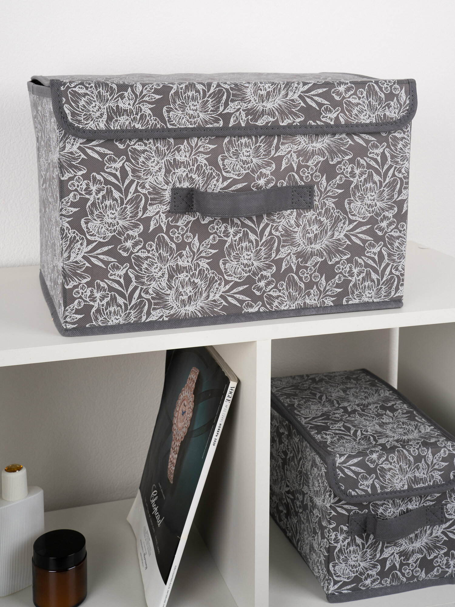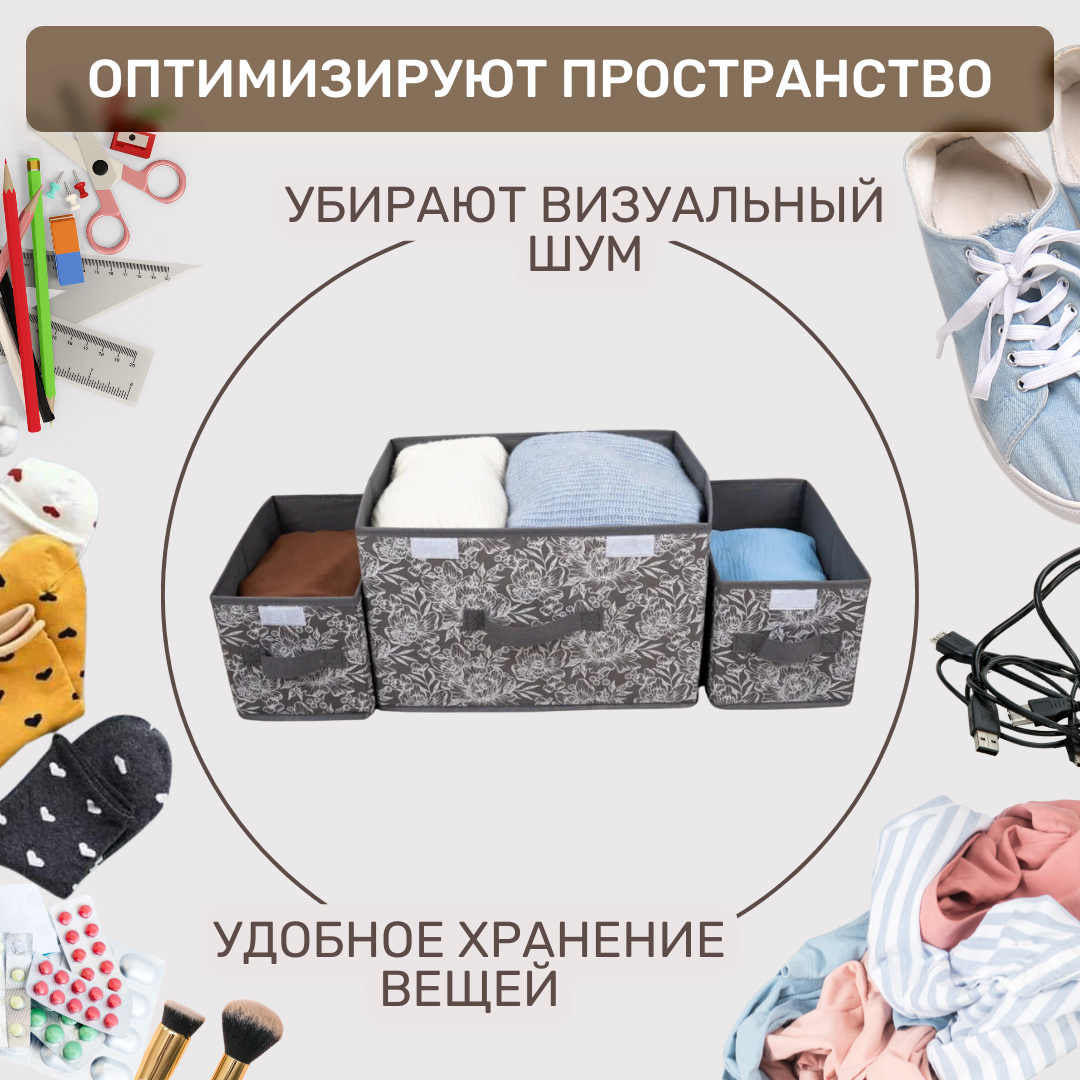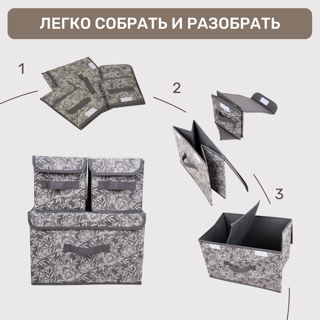 Ег (19353) grey flower набор коробов набор коробов для хранения