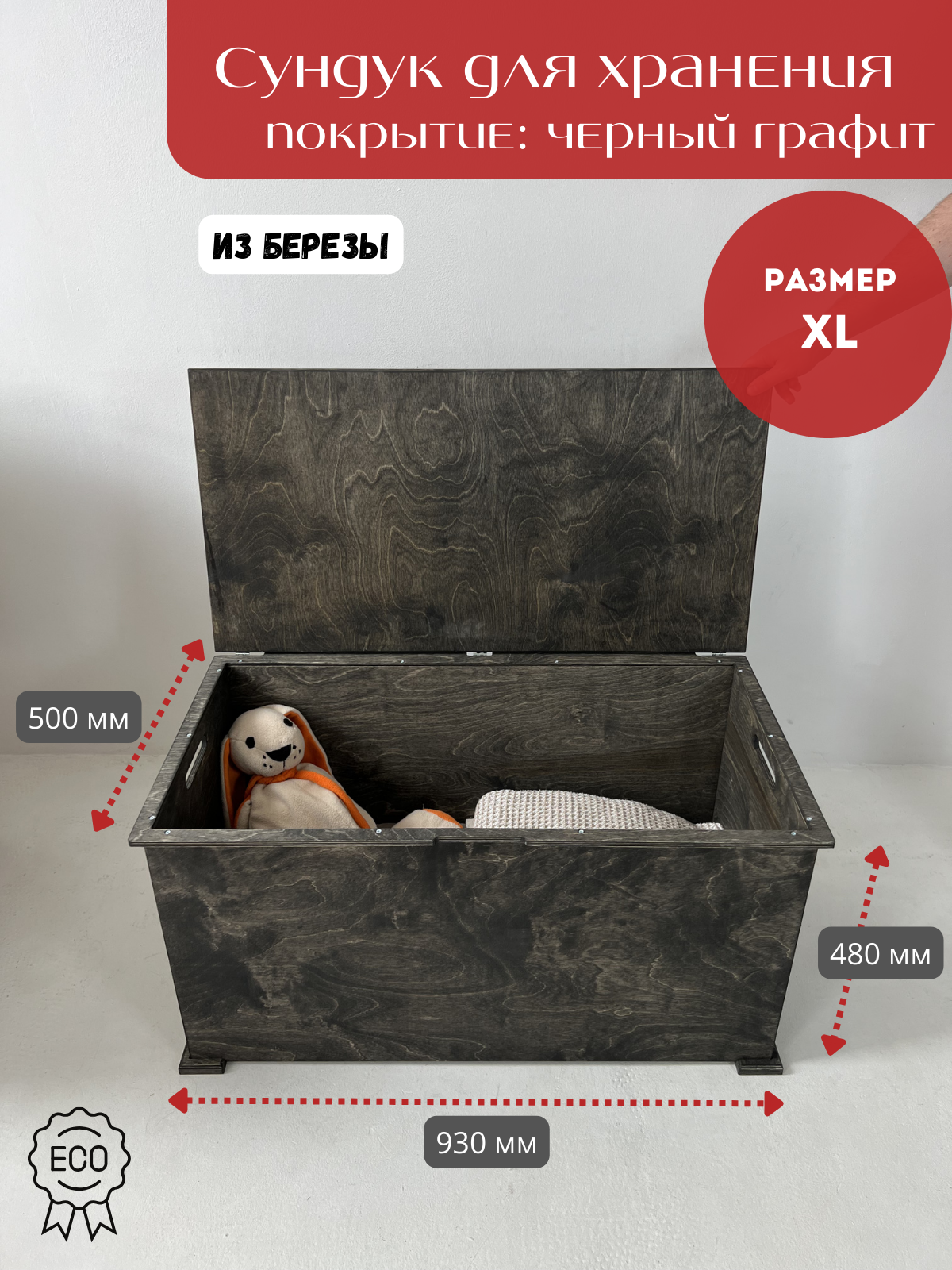 Cундук деревянный ящик для хранения вещей большой 93 Х 50 Х 48 см черный матовый интересное: