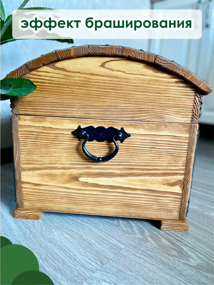 Сундук деревянный, из массива сосны с брашировкой, 31х23 см, высота 26,5 см, Лесная Сказка