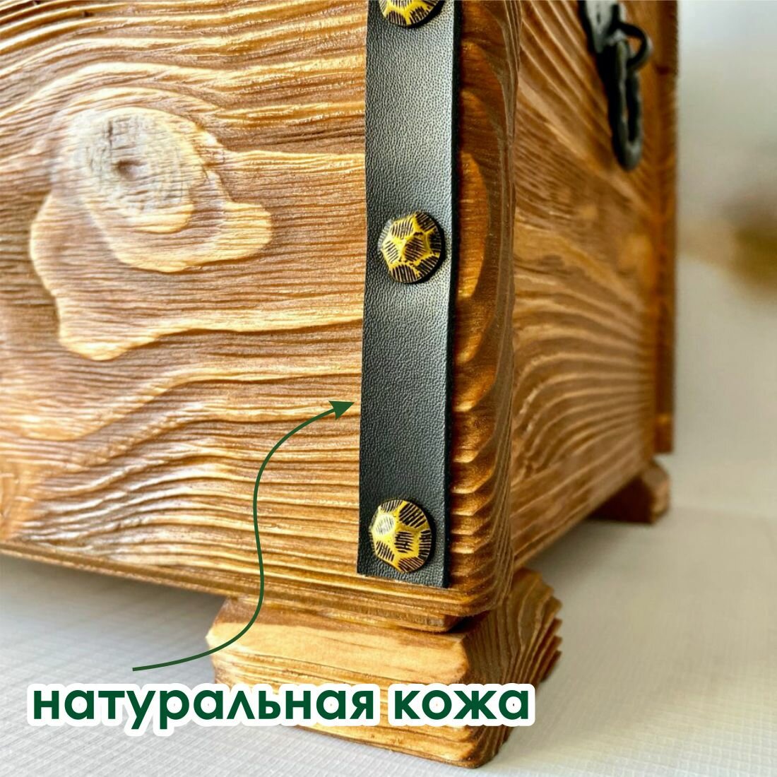 Сундук деревянный, из массива сосны с брашировкой, 31х23 см, высота 26,5 см, Лесная Сказка интересное: